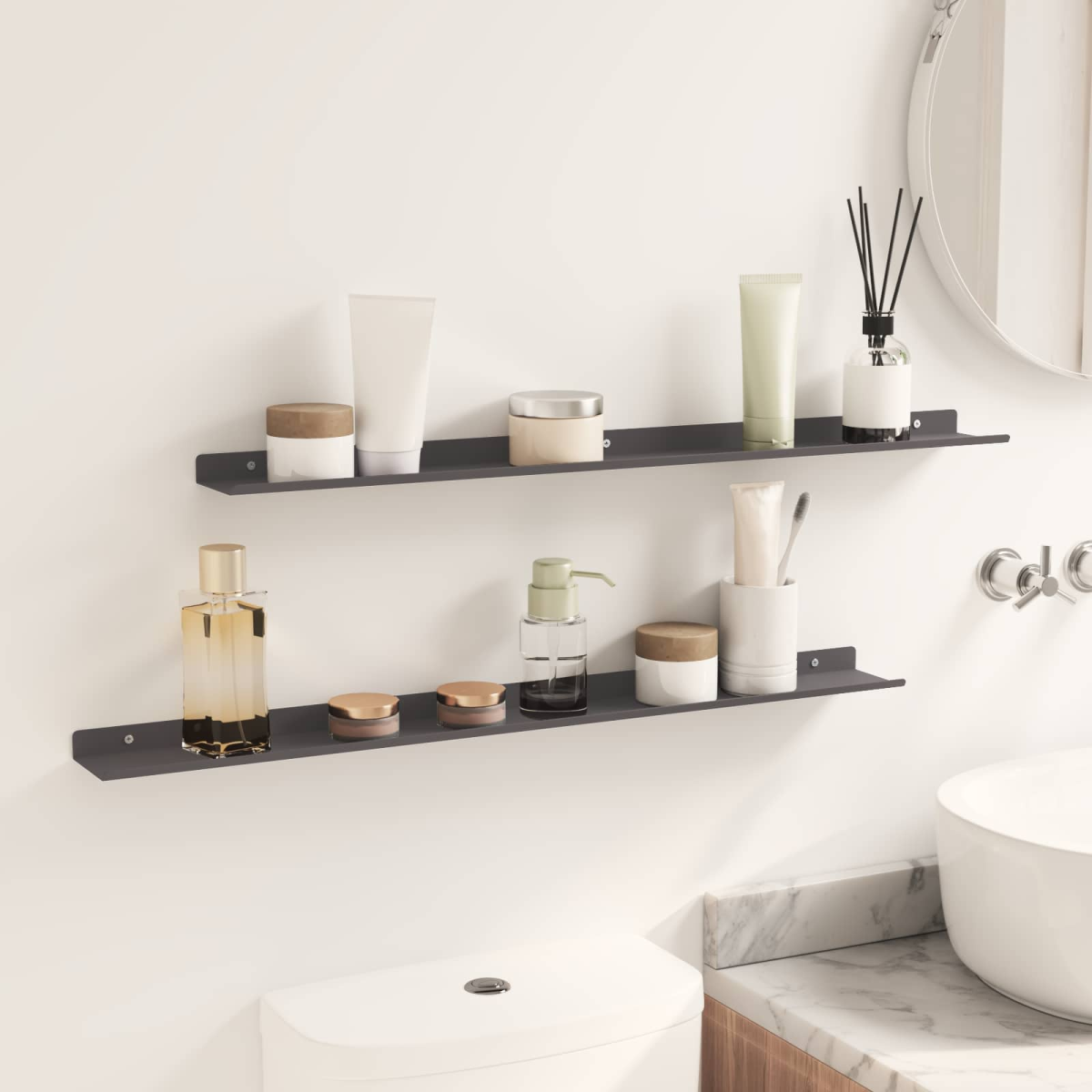 This sleek wall-mounted shelf combines minimalist style and contemporary design, offering a striking addition to any home. With its robust steel construction and smooth matte finish, this shelf exudes sophistication while serving as a versatile storage solution. Ideal for small spaces, it allows users to elevate their interior decor by providing a refined spot for displaying treasured items. Whether in a living room, bathroom, or kitchen, this functional shelf enhances the visual allure of any setting, allowing for a personalized touch. Matte Steel Construction The wall shelf is crafted from premium steel, providing a robust and durable structure that withstands daily load without compromising on aesthetics. The matte finish enhances its modern look, offering a smooth, non-reflective surface that seamlessly integrates into contemporary interiors. Wall-Mounted Design Designed for practicality, these shelves save precious floor space while providing ample room for storage. Ideal for various rooms, from living spaces to kitchens, the installation allows a streamlined and uncluttered appearance, contributing to an organized and stylish home. Easy Installation Every unit comes with necessary hardware, making assembly straightforward using basic household tools. Two people are recommended for installation, ensuring the shelf is mounted securely, enabling users to create their desired layout swiftly and efficiently. Versatile Use This shelf with raised edges excels in multiple scenarios, supporting items like books, vases, or toiletries. Frequent dusting with a damp cloth keeps its appearance fresh and clean, without using abrasives, making this product a non-intrusive yet effective addition to your home environment. Effortless Maintenance Maintaining the elegance of the wall shelf is simple: just wipe it down to remove dust and avoid harsh chemical cleaners to preserve its finish. This manageable care routine ensures long-term satisfaction and ongoing visual appeal.