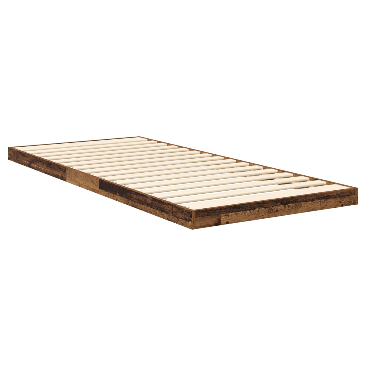 This modern floor bed frame combines simplicity and functionality, effortlessly integrating into any home decor. Crafted from engineered wood, it presents a sleek redolent of clean lines that accentuate its minimalist design. Suitable for various bedroom paradigms, it serves as a chic yet practical solution, designed for placement under a loft bed frame or as a standalone piece. Its unobtrusive shape enhances the space's refinement, offering a versatile backdrop for personal styles, whether contemporary or inclined toward tradition. Engineered Wood Structure Constructed from robust engineered wood, this bed frame is designed to withstand daily use while retaining an elegant appearance. This material choice ensures a blend of strength and aesthetic appeal, providing reliable support and a sleek look that complements modern interiors. Supportive Slat Design Featuring integrated slats, this bed frame offers consistent support and air circulation for the mattress, enhancing comfort levels and longevity. Placement Versatility Strategically designed to fit under loft beds, this frame maximizes room space without compromising style or comfort. It seamlessly adapts to any bedroom arrangement, providing an ideal option for both small apartments and spacious homes. Minimalist Aesthetic With its clean lines and understated elegance, the bed frame enhances the visual appeal of any room. This minimalist approach supports varied decor styles, from ultramodern to classic, offering a perfect aesthetic balance. Practical Assembly The assembly, requiring straightforward tools, allows for quick and efficient setup. It supports a wide range of mattress types, accommodating different sleeping preferences and ensuring lasting satisfaction in use.
