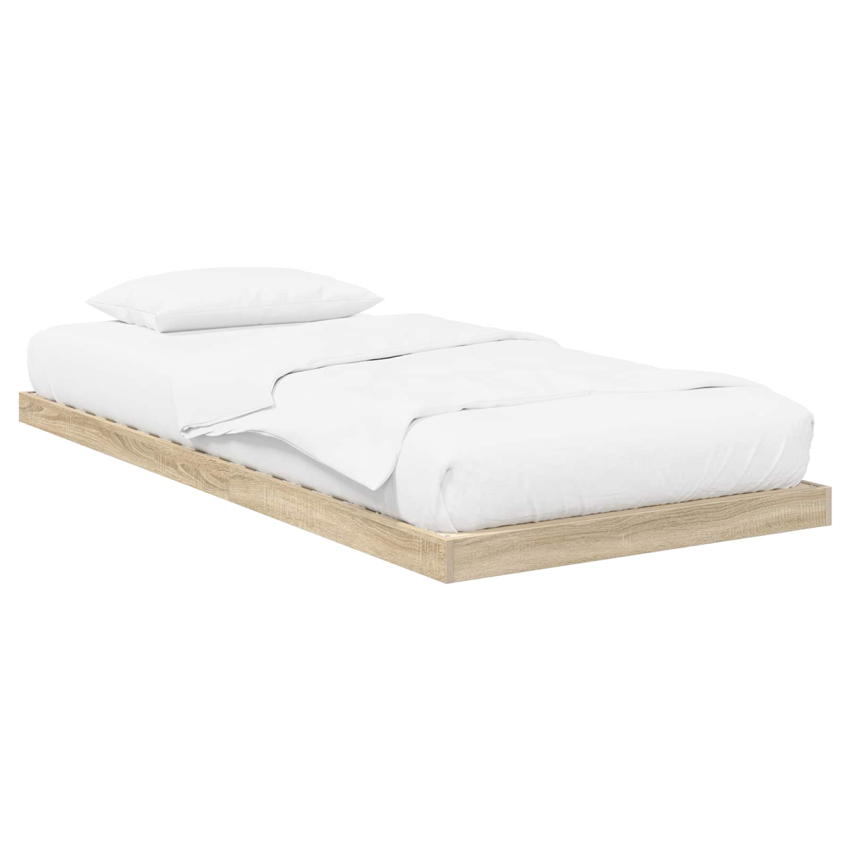 This modern floor bed frame combines simplicity and functionality, effortlessly integrating into any home decor. Crafted from engineered wood, it presents a sleek redolent of clean lines that accentuate its minimalist design. Suitable for various bedroom paradigms, it serves as a chic yet practical solution, designed for placement under a loft bed frame or as a standalone piece. Its unobtrusive shape enhances the space's refinement, offering a versatile backdrop for personal styles, whether contemporary or inclined toward tradition. Engineered Wood Structure Constructed from robust engineered wood, this bed frame is designed to withstand daily use while retaining an elegant appearance. This material choice ensures a blend of strength and aesthetic appeal, providing reliable support and a sleek look that complements modern interiors. Supportive Slat Design Featuring integrated slats, this bed frame offers consistent support and air circulation for the mattress, enhancing comfort levels and longevity. Placement Versatility Strategically designed to fit under loft beds, this frame maximizes room space without compromising style or comfort. It seamlessly adapts to any bedroom arrangement, providing an ideal option for both small apartments and spacious homes. Minimalist Aesthetic With its clean lines and understated elegance, the bed frame enhances the visual appeal of any room. This minimalist approach supports varied decor styles, from ultramodern to classic, offering a perfect aesthetic balance. Practical Assembly The assembly, requiring straightforward tools, allows for quick and efficient setup. It supports a wide range of mattress types, accommodating different sleeping preferences and ensuring lasting satisfaction in use.