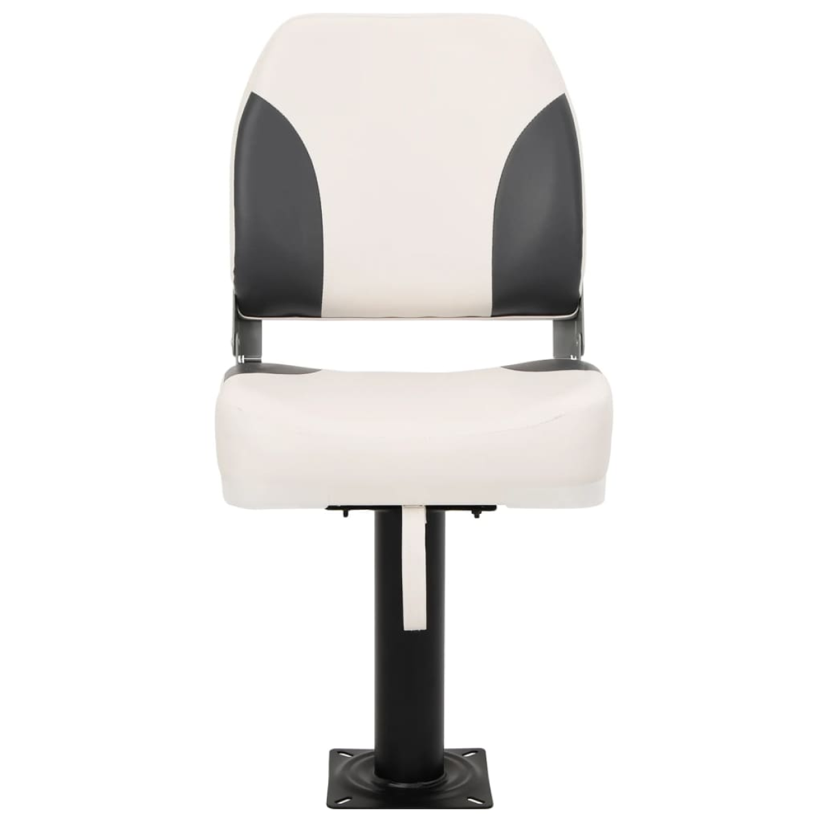This practical boat seat set will make a great addition to your boat. Easy to clean: This boat seat is made from PVC and PU, making it water-resistant, easy to clean, and quickly dry.Long-lasting material: The boat seat pedestal is made of steel, making it sturdy and long-lasting. Its black powder-coat finish adds extra protection against the harsh marine environment.Comfortable: This boat seat has a backrest that has compression foam padding. You will stay comfortable all day and release the stress on your back.Foldable design: The boat seat features a foldable design, allowing the backrest to fold down when not in use. Additionally, the inclusion of a fixing strap sewn into the seat enhances both durability and convenience for carrying and storage.Universal compatibility: This boat seat pedestal is suitable for all seats with a flat bottom or where the hole size can be used for ball bearings, giving you the freedom to choose and combine according to your specific needs. Good to know:Mounting screws for swivel are not included.