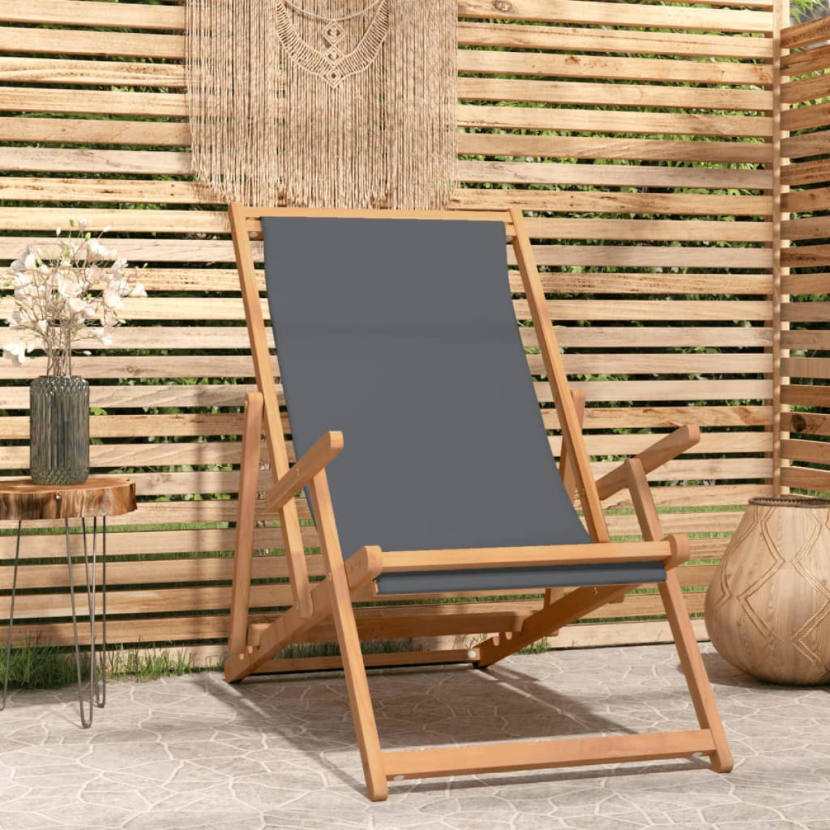 This folding beach chair features an iconic design and is a perfect choice for your garden or for the beach or campsite. Premium material: Solid teak wood is a beautiful natural material. Treat the surface with oil, wax, lacquer, or a glazing finish for a stronger surface and easy cleaning. Teak wood is very strong and weather resistant. Comfortable seating: The fabric seat and backrest add to the chair's seating comfort. The backrest can be adjusted so you can find the most comfortable sitting or lying position. Easy storage: The deck chair folds easily and can be conveniently stowed away to save space. Note:In order to extend the life of your outdoor furniture, we recommend you to clean it regularly and do not leave it outdoors without protection unnecessarily. Clean: Use a mild soap solution. Storing: If possible, store in a cool, dry place indoors. If the product is stored outdoors, protect it with a waterproof cover. Wipe and dry the excess water or snow from flat surfaces after a rain or snowfall. Allow sufficient air circulation to avoid moisture-related damage.