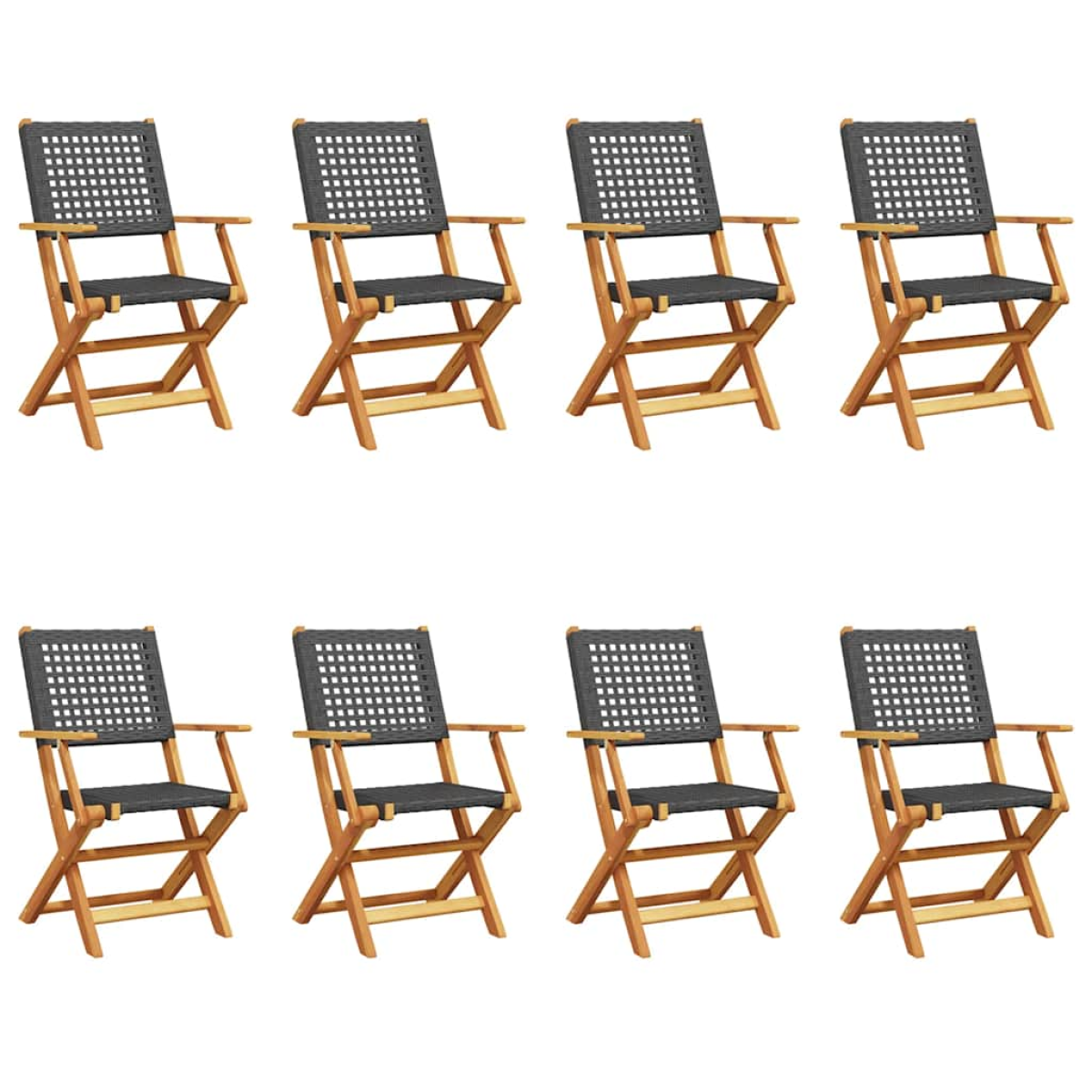 vidaXL Folding Garden Chairs 8 pcs Black Poly Rattan and Solid Wood