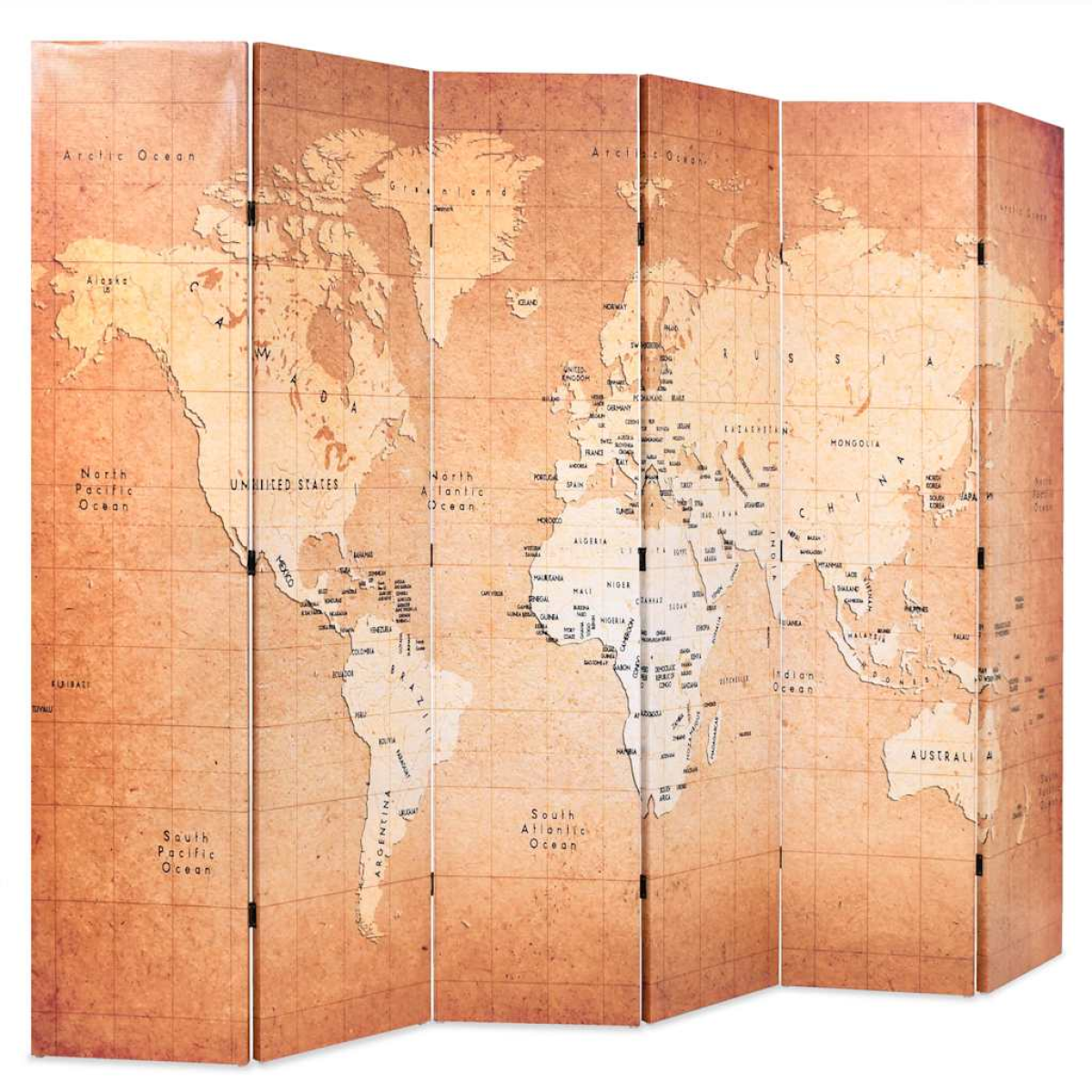 vidaXL Folding Room Divider 228x170 cm World Map Yellow