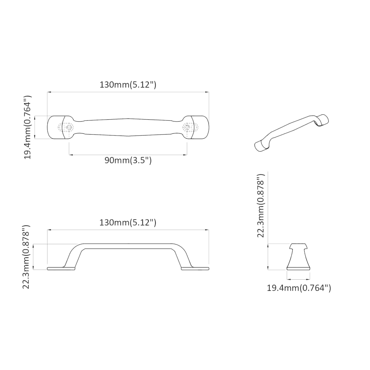 - Overall dimensions: 130 x 19.4 x 22.3 mm (L x W x H)