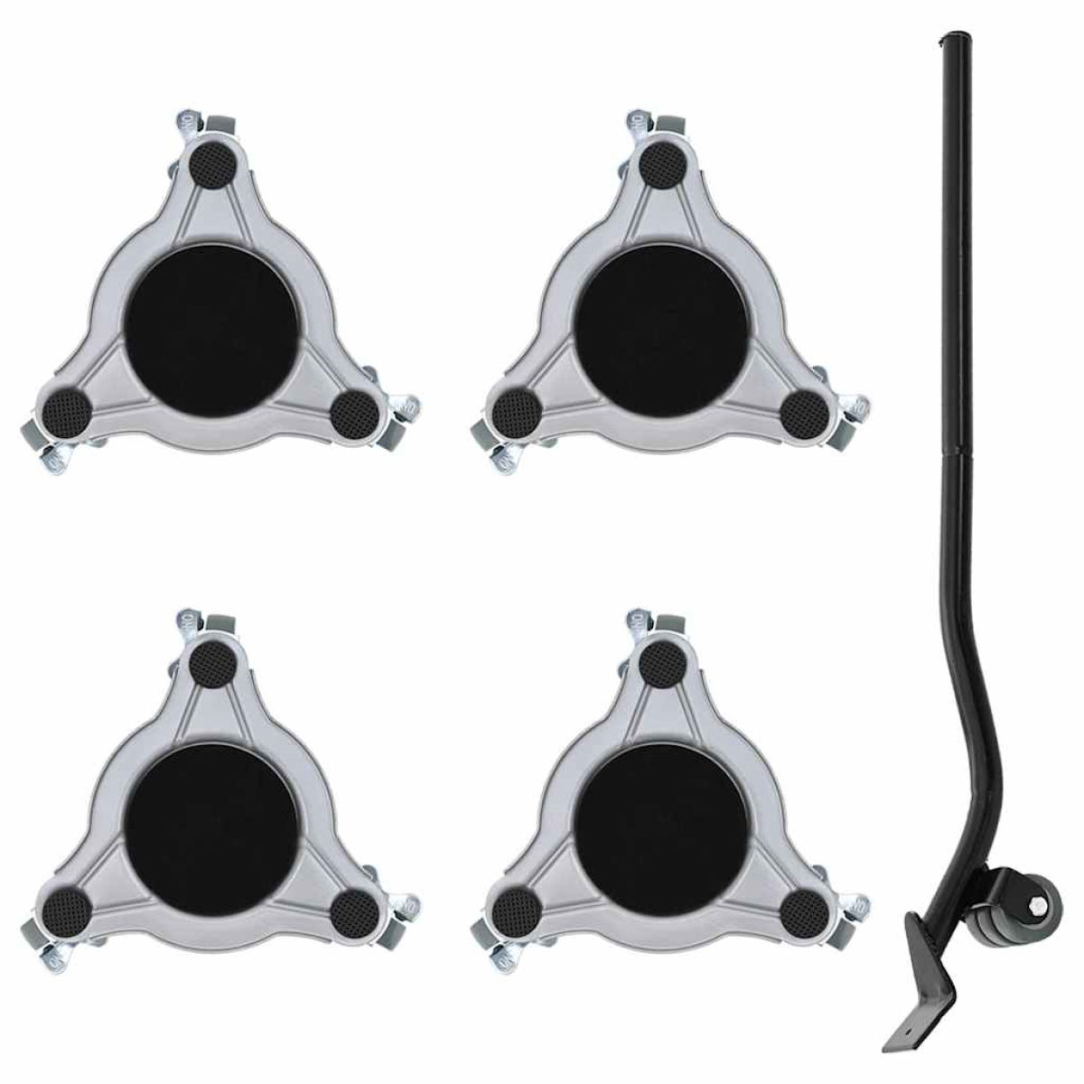 These furniture rollers make it easy to move heavy items like sofas and refrigerators, allowing for quick rearrangement while reducing strain on your back. Robust and stable: Steel frame is impressed by its strength, durability, and resistance to corrosion, making it an ideal choice for various applications, including furniture manufacturing and construction.Anti-slip pads: The furniture roller is designed with anti-slip pads in the centre and on three corners, providing cushioned support and ensuring that your cherished items remain safe from scratches during movement.360° swivel casters: The 4 rubber casters are designed with 360° swivel ball bearings, providing smooth, quiet and effortless movement. For added stability, three of the casters are lockable, keeping your furniture securely in place.Easy to use: The furniture moving set includes a long-bar lifter that allows you to easily lift furniture, making it simple to slide the wheeled dolly underneath. This feature offers a convenient and easy solution for repositioning heavy items.Wide applications: The leg dolly is ideal for a wide range of furniture, from sofas to cabinets, making them perfect for use at home, in the office, or in workshops.