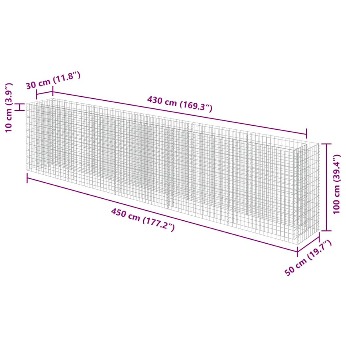 vidaXL Gabion Raised Bed Galvanised Steel 450x50x100 cm