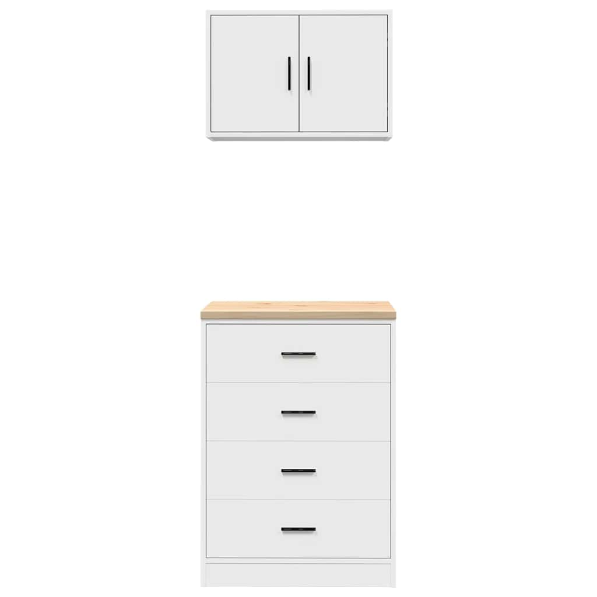 These garage cabinets are an excellent choice for organising all your DIY tools and materials in the garage, storage room, or workshop. Durable and long-lasting: This garage cabinet is made from durable pinewood and engineered wood, ensuring stability and sturdiness for long-lasting use.Ample storage space: This tool cabinet allows you to keep your frequently used tools within easy reach, making it convenient to access everything you need for your next project.Versatile work surface: The wooden worktop provides a sturdy surface for various tasks, such as repairs, assembly, or DIY projects.Easy to maintain: Thanks to its smooth surface, the cabinet is easy to clean with a damp cloth and requires less maintenance.Wide applications: This garage storage cabinet provides plenty of secure space, making it ideal for organising items in various settings such as garages, offices, utility rooms, pantries, basements, or workshops.Flexible door installation: The door of the compartment can be installed on the left or right according to your personal habits and convenience. Good to know:Screws and plugs for inside the wall are not included. We advise to find and use screws and plugs suitable specifically for your walls. If you're not sure, you can consult with a professional. Please read and follow each step of the instructions. Warning:To prevent it from tipping over, this product must be used with the provided wall attachment device.