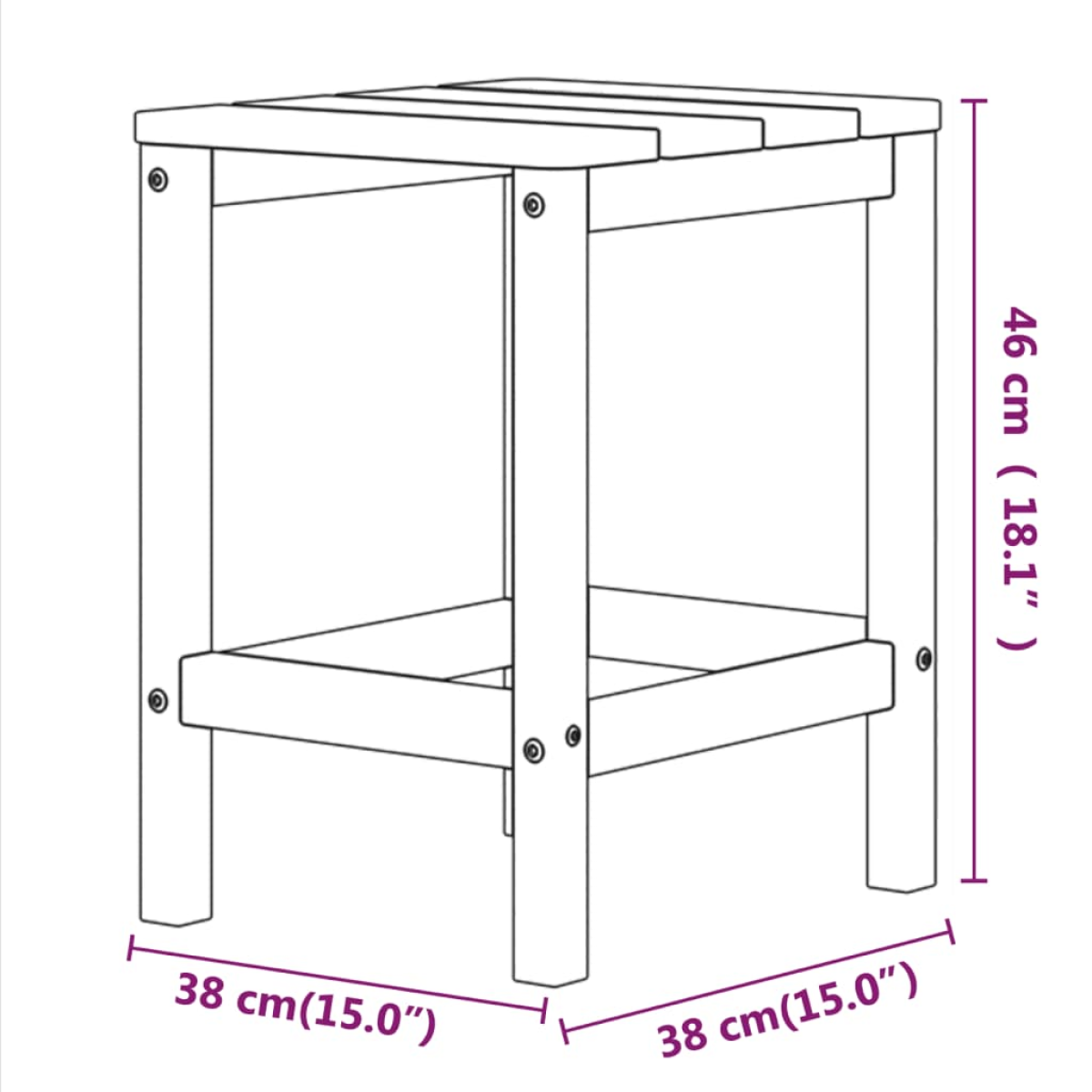 - Table dimensions: 38 x 38 x 46 cm (W x D x H)