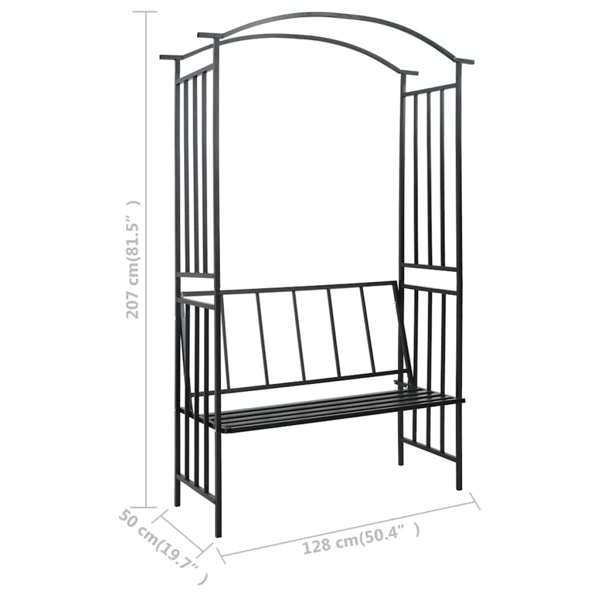 vidaXL Garden Arch with Bench Black 128x50x207 cm Iron