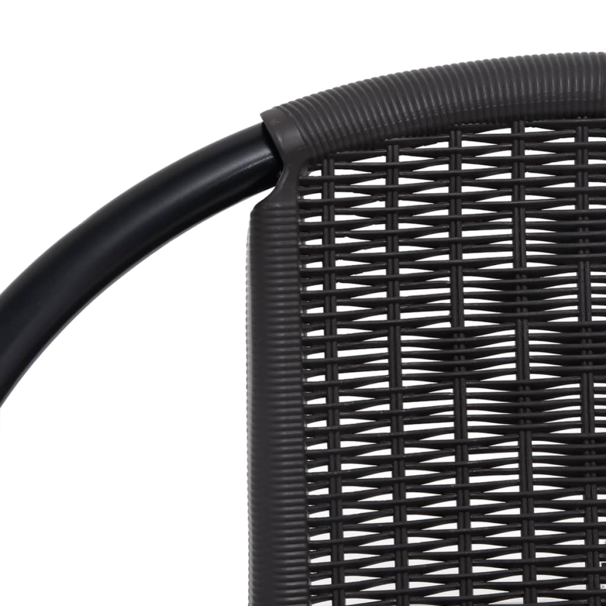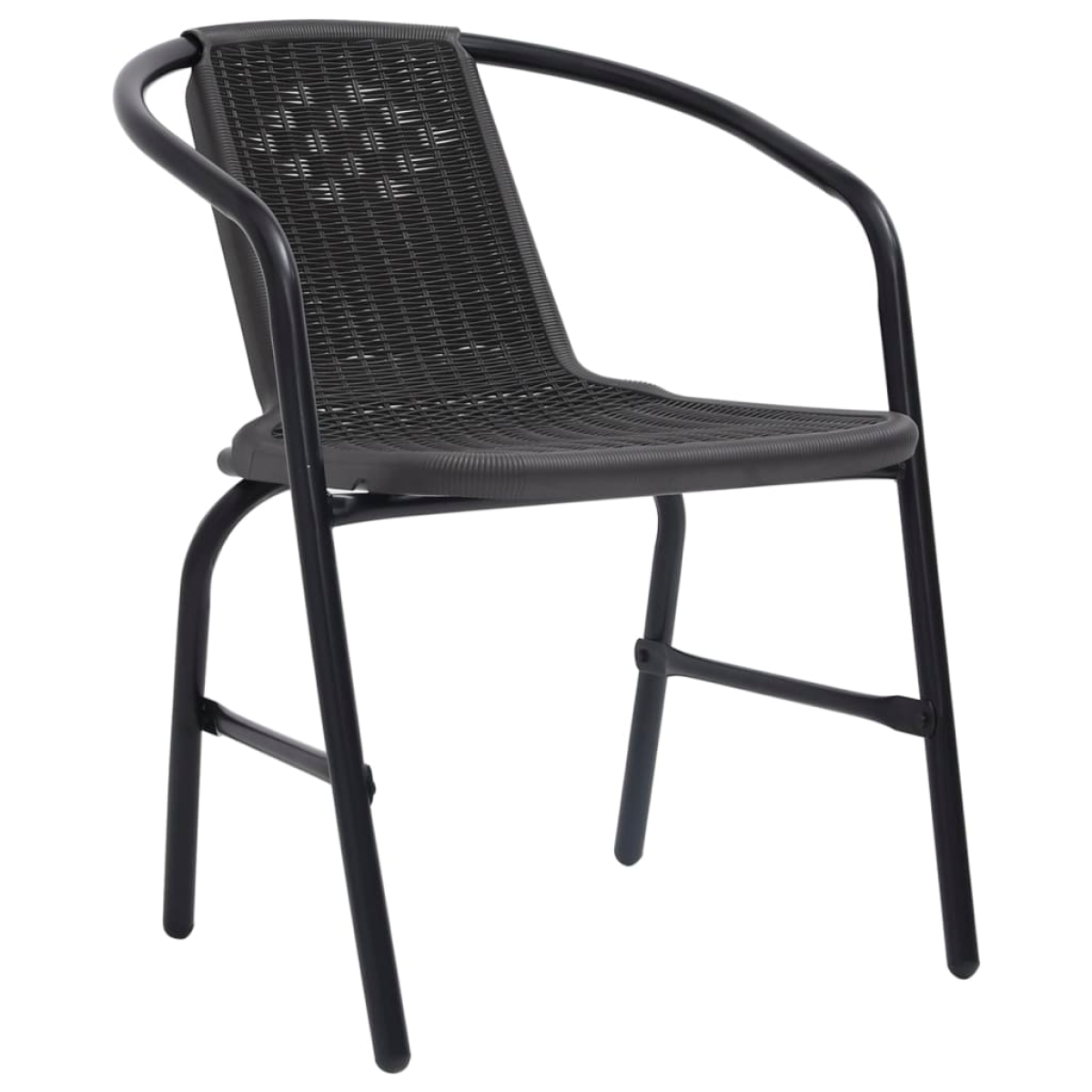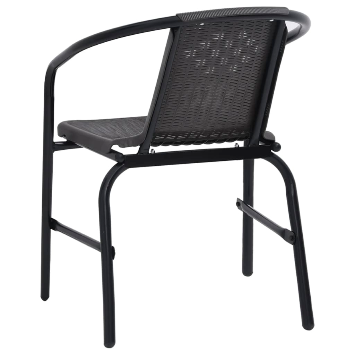 The garden chair set with rattan look is suitable for having your meals or just relaxing in the outdoors. Sturdy frame: Thanks to the steel frame, the outdoor chairs are stable and sturdy.Stackable chair: These armchairs are stackable to save space when not in use.Comfort seating: These patio chairs are made of plastic rattan, which add to seating comfort.Note:In order to extend the life of your outdoor furniture, we recommend you clean it regularly and do not leave it outdoors without protection unnecessarily.Clean: Use a mild soap solutionStoring: If possible, store in a cool, dry place indoors. If the product is stored outdoors, protect it with a waterproof cover. Wipe and dry the excess water or snow from flat surfaces after a rain or snowfall. Allow sufficient air circulation to avoid moisture-related damage.