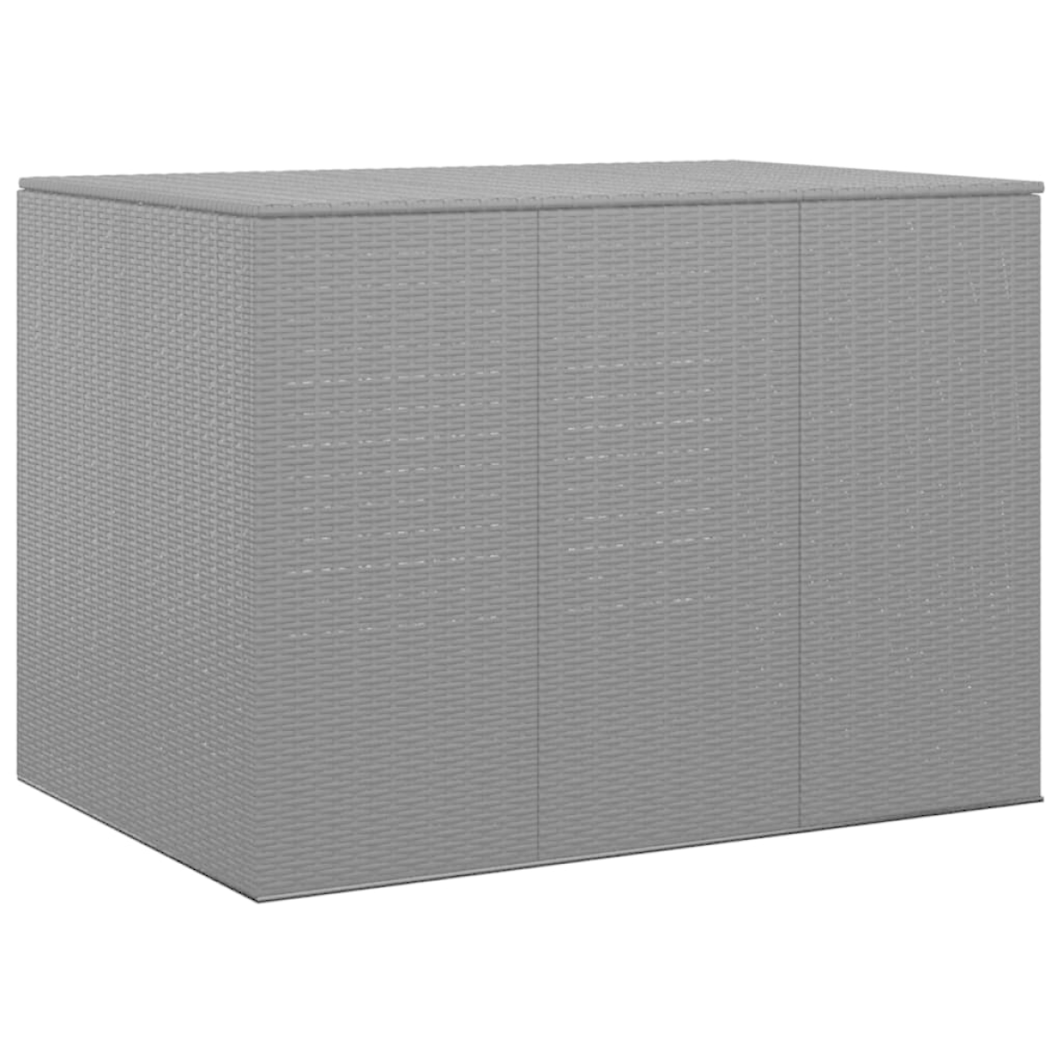This simplistic PE rattan garden cushion box is an ideal choice for storing cushions, pillows, extra blankets, towels, household knick-knacks, and so much more. This garden storage box has a sturdy, powder-coated steel frame, which is highly durable. Thanks to the weather-resistant PE rattan, the storage chest is easy to clean, hard-wearing and suitable for both outdoor and indoor use. Also, the PE inner water-resistant bag with cover and zipper protects your items from moisture. Additionally, the cushion box features a gas lift mechanism that makes it easy to open and close, protecting fingers and hands from accidental closing. Note: In order to extend the life of your outdoor furniture, we recommend you to clean it regularly and do not leave it outdoors without protection unnecessarily.Clean: Use a mild soap solution.Storing: If possible, store in a cool, dry place indoors. If the product is stored outdoors, protect it with a waterproof cover. Wipe and dry the excess water or snow from flat surfaces after a rain or snowfall. Allow sufficient air circulation to avoid moisture-related damage.