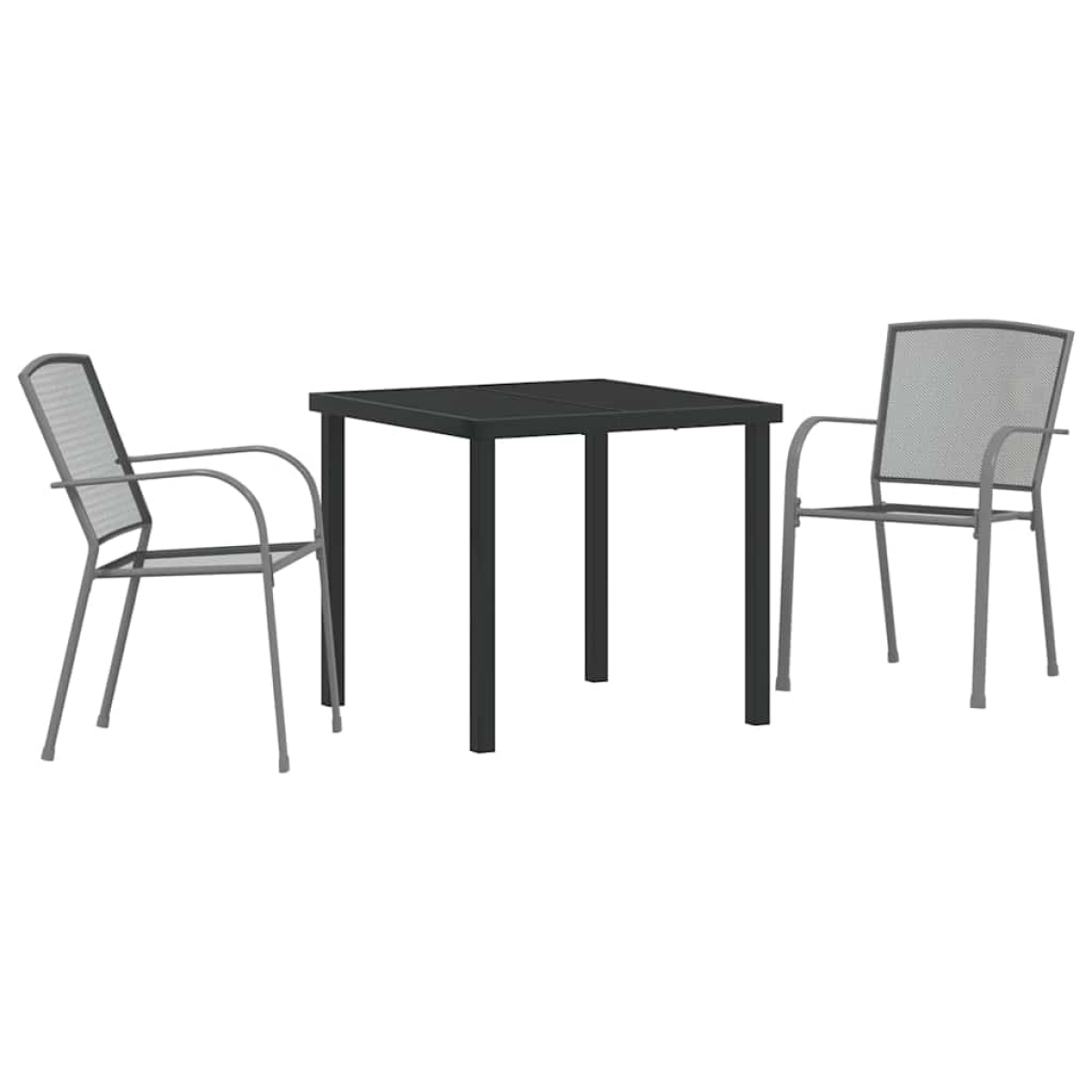 Check out this stylish garden furniture set! It’s a fab mix of modern design and practicality, just right for turning your outdoor space into a cosy getaway. With its sleek shape and smooth finish, it's a proper eye-catcher and comfy too, perfect for any garden or terrace. It’s all about gathering and chilling, letting you enjoy those long summer days and lovely evenings with pals and family, while adding a dash of elegance to your outdoor space. Materials: Built from tough powder-coated steel, this set is all about durability and can handle whatever the weather throws at it. The sturdy steel means you’re set for years, and the powder coating helps it resist and , so it’s as stylish as it is practical. Included Components: Each piece features a posh tempered glass tabletop that not only looks great but is also ideal for dining or chilling out. The comfy back and armrests let you relax properly. The anthracite colour ties everything together nicely, boosting the aesthetic without losing out on functionality. Features / Function / Design: The stackable design is super handy for saving space, making it easy to tuck away when you’re not using it. Perfect for folks with less room, it clears up your outdoor space. Recommended Uses: Just right for gardens, terraces, or any outdoor spots where classy lounging or dining is on the cards. It fits right in for both home and business settings, whether it’s casual dinners or bigger get-togethers. The versatile style adjusts easily to different decor themes. Care & Maintenance: Keeping your furniture in top shape is easy with recommended covers when you’re not using it. A quick wipe down with a dry cloth keeps it looking sharp. Just steer clear of harsh cleaners to keep it looking fab and lasting longer.