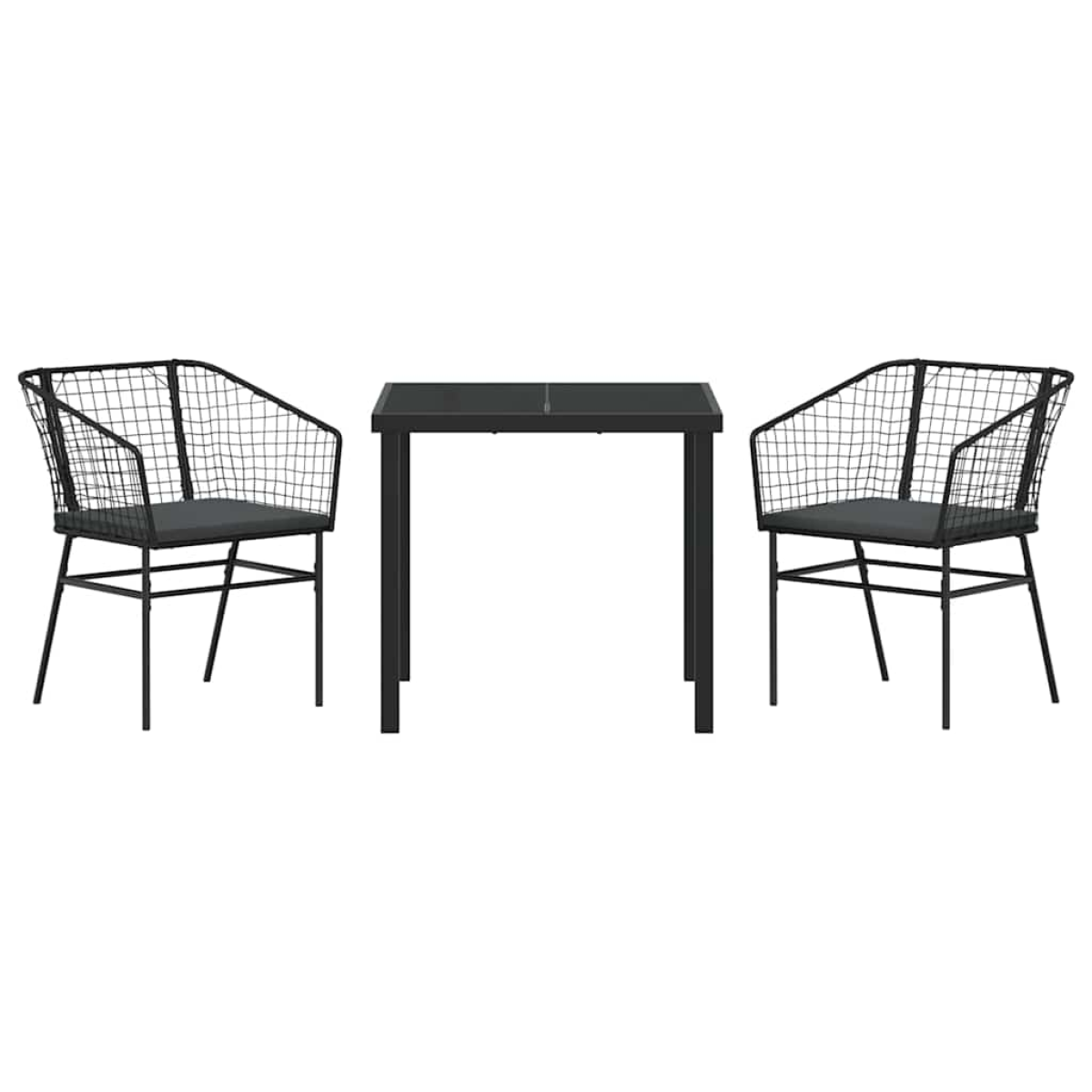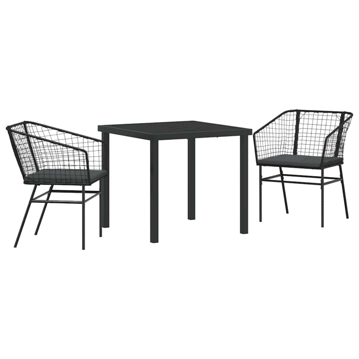 vidaXL Garden Dining Set 3 pcs Black Poly Rattan