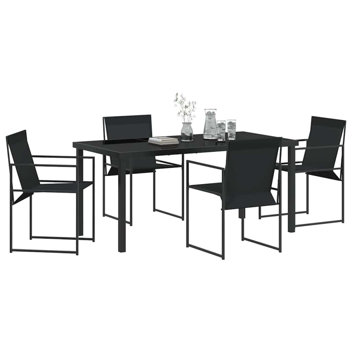 vidaXL Garden Dining Set 5 pcs Black Textilene & & Powder-coated steel