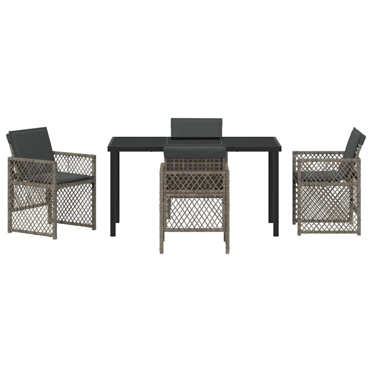 This Modern Garden Dining Set mixes style and practicality, making it a top pick for anyone who loves hosting outside. Its sleek design and minimalist vibe mean it slots into any garden or patio easily, creating a smart spot to share meals with your nearest and dearest. The poly rattan gives it a trendy look while staying comfy even if you’re sitting for a while. Whether you're having a laid-back brunch or a fancy dinner party, this dining set fits the bill, adding a touch of elegance and usefulness. Materials: Made from poly rattan, this dining set is not just good-looking, it’s comfy and tough enough to brave the outdoors. The strong steel frame keeps it sturdy and safe, whatever the occasion. Poly rattan is chosen for being durable and stylish. Included Components: The set has a roomy dining table and matching chairs, ready for all your outdoor dining needs. The chairs have backrests made from poly rattan and steel, making them both strong and comfy. The steel legs ensure a solid base with a classic look. Features / Function / Design: With a modern twist, this dining set features clean lines and simple elements, making it a must-have for any outdoor area. Its durable design guarantees it’ll last, and the solid steel frame keeps the table stable, even during heavy use. Recommended Uses: Ideal for gardens and patios, this dining set boosts outdoor spaces focused on socialising and entertainment. Whether it’s family dinners or sunny alfresco meals, it’s perfect for both laid-back vibes and formal occasions. Care & Maintenance: To keep your dining set looking sharp, use protective covers when it’s not in use. Clean it regularly with a dry or damp cloth to maintain its original appearance. Every now and then, check and tighten any screws or bolts to ensure it stays sturdy.