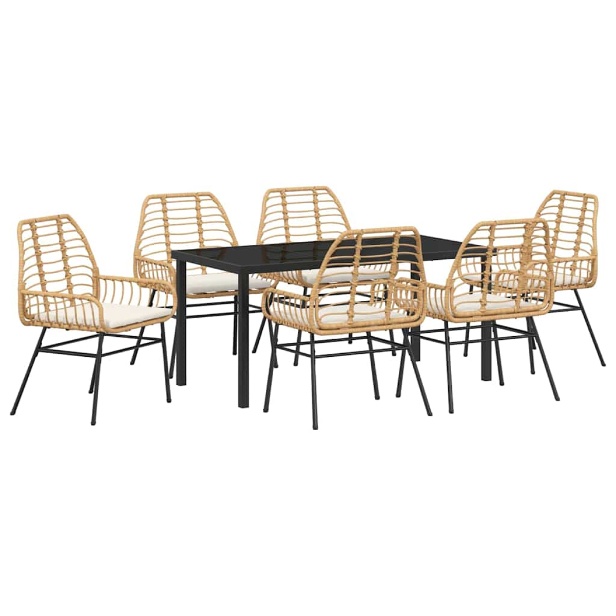 This Modern Garden Dining Set shouts sleek elegance with its tidy lines and minimalist vibe, making it the perfect choice for outdoor dining in the summer. Crafted for those who love style without the fuss, this set meets practical needs while looking fab, blending right in with your garden or terrace. Whether you’re having mates over or enjoying a meal outside, it’s designed to be comfy and easy on the eye. Sturdy Steel Frame: Built to last, this dining set gives you solid support. Steel’s tough and weather-resistant, making it perfect for the outdoors, so it can handle changing temperatures without a hitch. Stylish Glass Top: The glass surface brings a modern touch, shining in the sunlight for a bright dining experience. It’s a breeze to clean too, staying looking smart with hardly any effort, great for daily use or fancy dinners. Comfy Poly Rattan Armrests: Ergonomically shaped for relaxed arms, these poly rattan armrests don’t just look good; they feel good too, providing some extra cushioning while you sit. Summer-Ready Design: Made especially for those sunny days, the materials and build ensure you can chill outside comfortably. It’s perfect for hot weather and fits right in with your summer decorations. Easy Care: To keep it looking lovely for ages, just cover it when you’re not using it. This keeps it safe from the elements, dust, and any potential damage.