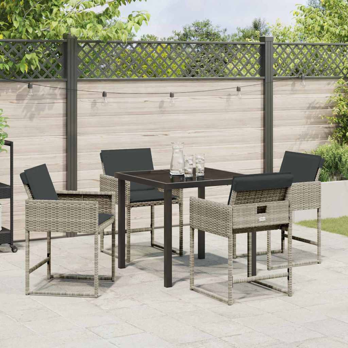 Meet the Contemporary Folding Outdoor Set – a stylish addition to your garden or terrace. It combines functionality and chic design, great for anyone who loves hosting or chilling outside. This set blends right into outdoor spaces, adding a comfortable and trendy vibe. Picture yourself enjoying a sunny brunch or a peaceful evening outside; this set fits all your outdoor living moments. Materials: Made from high-quality poly rattan with a hand-woven design that looks great and lasts. The sturdy powder-coated steel frame won’t , keeping it reliable in different weather. The tempered glass tabletop is elegant and easy to care for, making it a standout in your garden. Included Components: This set comes with comfy poly rattan armrests and a backrest for added relaxation. The strong square legs provide great support, and the outdoor cushions, wrapped in weather-resistant fabric, guarantee a comfy spot. There’s a clever flap closure to keep the cushion secure and make cleaning a breeze. Features / Function / Design: The foldable design makes it super easy to store when you’re not using it, saving you space. Each part is UV-resistant, so you can enjoy sunny outdoor hangouts without worrying about wear and tear. The modern look complements any garden layout. Recommended Uses: Perfect for gardens, patios, and terraces, this set makes hosting gatherings or just enjoying some peace outside a real joy. Whether it’s a brunch with friends or a quiet starry night, its flexibility makes it ideal for anyone who loves the outdoors. Care & Maintenance: Looking after this furniture couldn’t be easier. Just cover it when you’re not using it to keep it looking good, and steer clear of harsh cleaning products. A quick dusting and a damp cloth now and then will keep everything in tip-top shape.