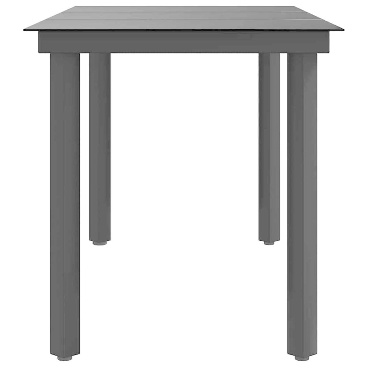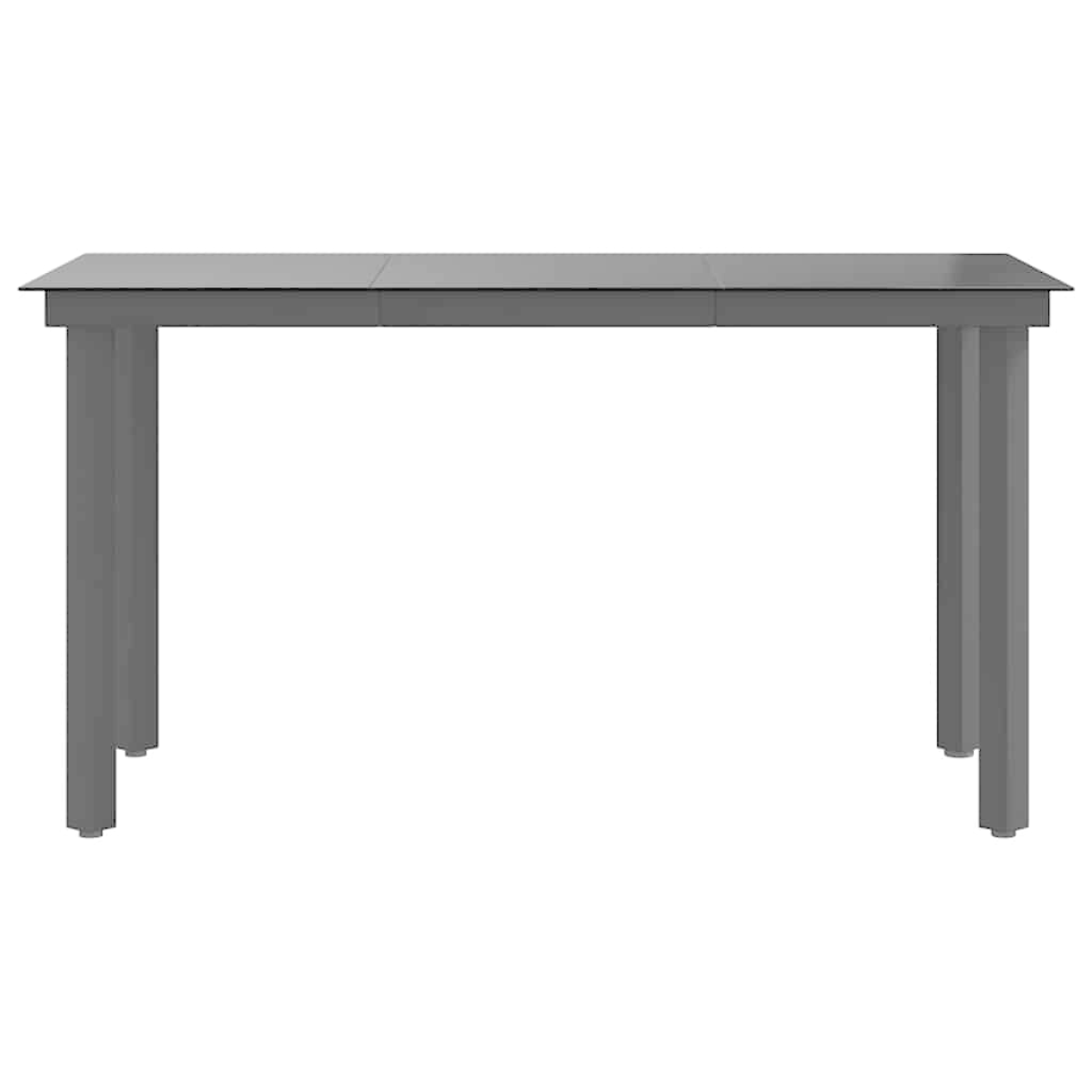 This minimalist steel and glass dining table will make a classic addition to your garden, balcony and patio. This dinner table is made up of a powder-coated steel frame, sturdy and stable for daily outdoor use. The smooth glass tabletop is easy to clean with a damp cloth and perfect for placing meals, drinks and other decorative items. Note: In order to extend the life of your outdoor furniture, we recommend you to clean it regularly and do not leave it outdoors without protection unnecessarily.Clean: Use a mild soap solution.Storing: If possible, store in a cool, dry place indoors. If the product is stored outdoors, protect it with a waterproof cover. Wipe and dry the excess water or snow from flat surfaces after a rain or snowfall. Allow sufficient air circulation to avoid moisture-related damage.
