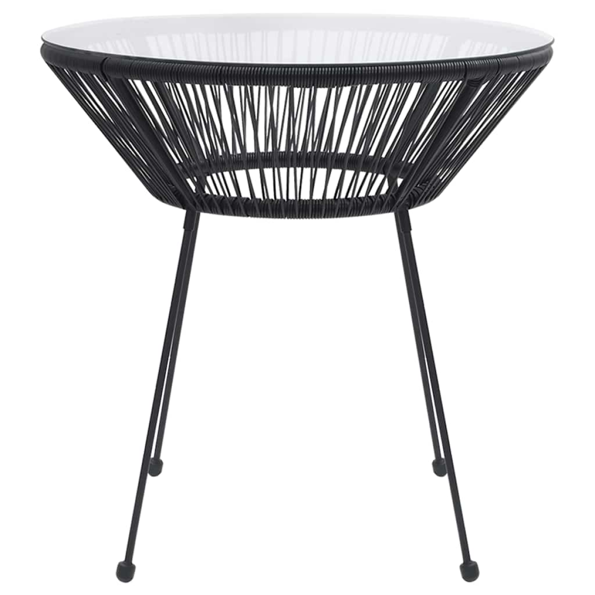 - Material: Round PVC rattan, tempered glass, powder-coated steel