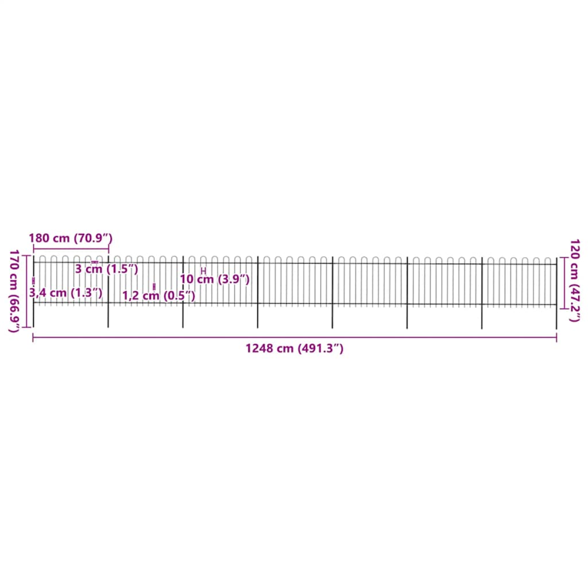 Create an elegant fence around your garden, home, or walkway with our garden fence! Our decorative steel garden fence, consisting of 7 fence panel and 8 posts, has a total length of 11.9 metres. It will form a sturdy, safe and maintenance-free perimeter barrier for your garden, home, or business property. With vertical bars with hoop top and strong horizontal brace as reinforcement to the frame, our garden fence will provide a high degree of security. Manufactured from heavy-duty, powder-coated steel, the outdoor fence is very strong and thus stable, sturdy and durable. Thanks to the included mounting materials, the garden fence is easy to assemble. Note: You can buy more sets to make the fence as long as you like.