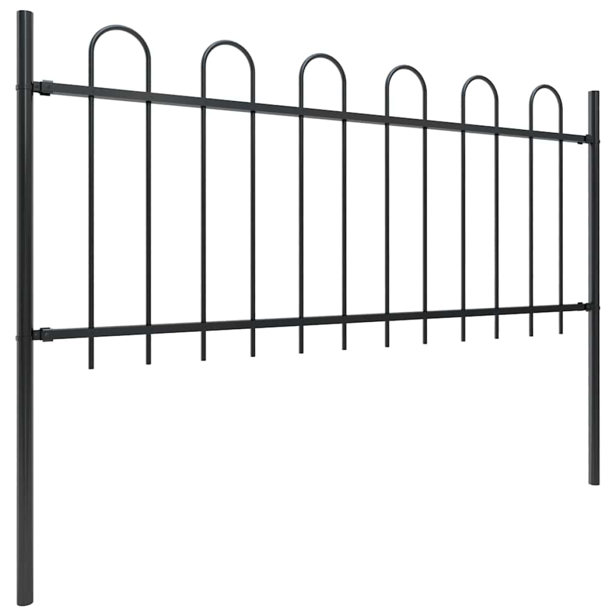 Create an elegant fence around your garden, home, or walkway with our garden fence! Our decorative steel garden fence, consisting of 9 fence panel and 10 posts, has a total length of 15.3 metres. It will form a sturdy, safe and maintenance-free perimeter barrier for your garden, home, or business property. With vertical bars with hoop top and strong horizontal brace as reinforcement to the frame, our garden fence will provide a high degree of security. Manufactured from heavy-duty, powder-coated steel, the outdoor fence is very strong and thus stable, sturdy and durable. Thanks to the included mounting materials, the garden fence is easy to assemble. Note: You can buy more sets to make the fence as long as you like.