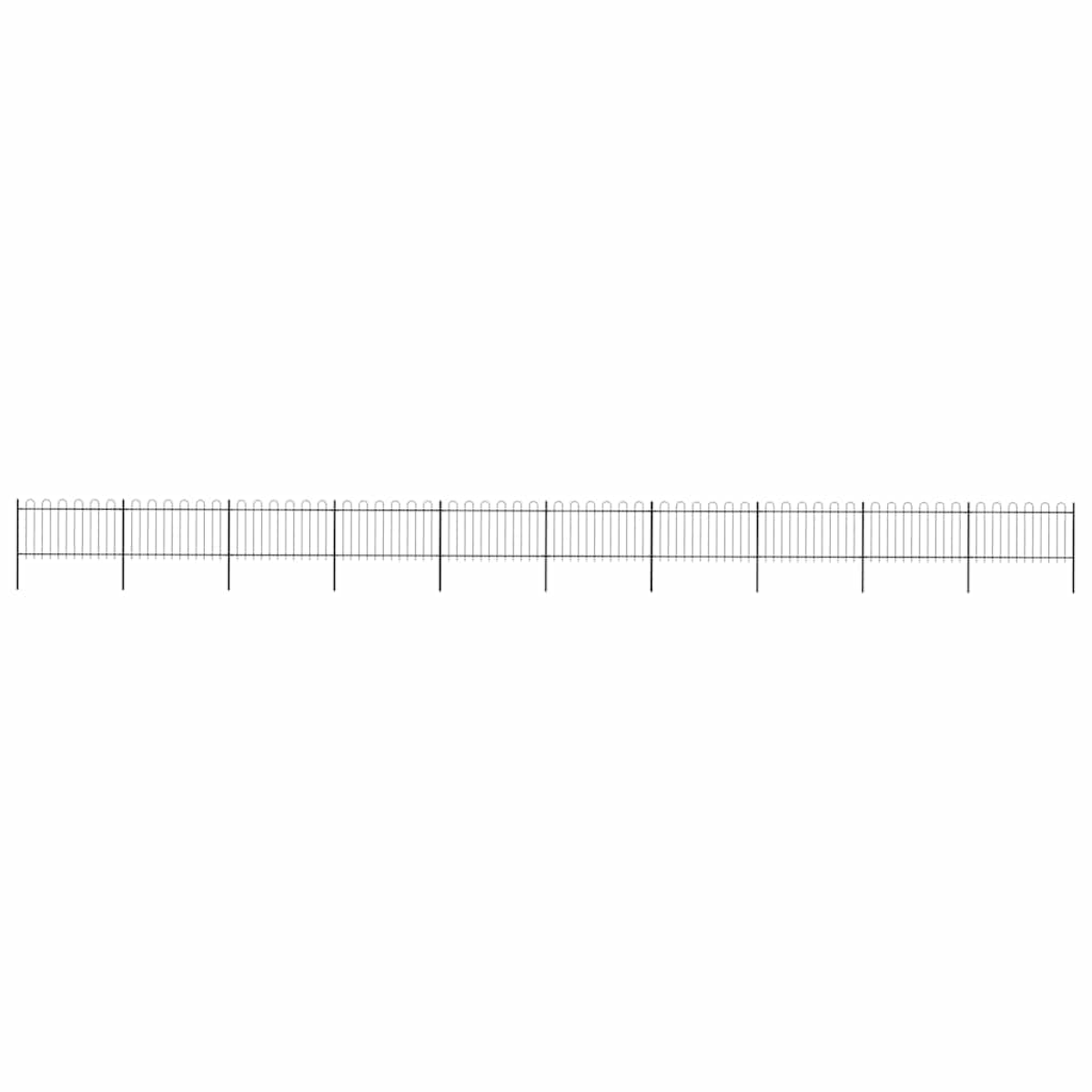 Create an elegant fence around your garden, home, or walkway with our garden fence! Our decorative steel garden fence, consisting of 10 fence panel and 11 posts, has a total length of 17 metres. It will form a sturdy, safe and maintenance-free perimeter barrier for your garden, home, or business property. With vertical bars with hoop top and strong horizontal brace as reinforcement to the frame, our garden fence will provide a high degree of security. Manufactured from heavy-duty, powder-coated steel, the outdoor fence is very strong and thus stable, sturdy and durable. Thanks to the included mounting materials, the garden fence is easy to assemble. Note: You can buy more sets to make the fence as long as you like.