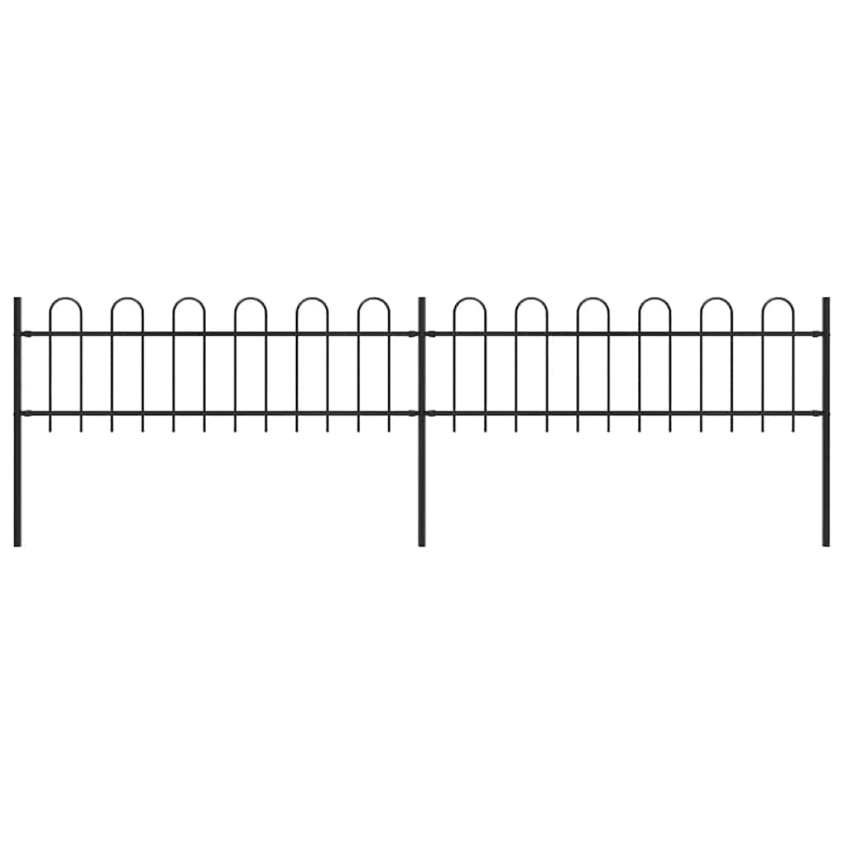 Create an elegant fence around your garden, home, or walkway with our garden fence! Our decorative steel garden fence, consisting of 2 fence panel and 3 posts, has a total length of 3.4 metres. It will form a sturdy, safe and maintenance-free perimeter barrier for your garden, home, or business property. With vertical bars with hoop top and strong horizontal brace as reinforcement to the frame, our garden fence will provide a high degree of security. Manufactured from heavy-duty, powder-coated steel, the outdoor fence is very strong and thus stable, sturdy and durable. Thanks to the included mounting materials, the garden fence is easy to assemble. Note: You can buy more sets to make the fence as long as you like.