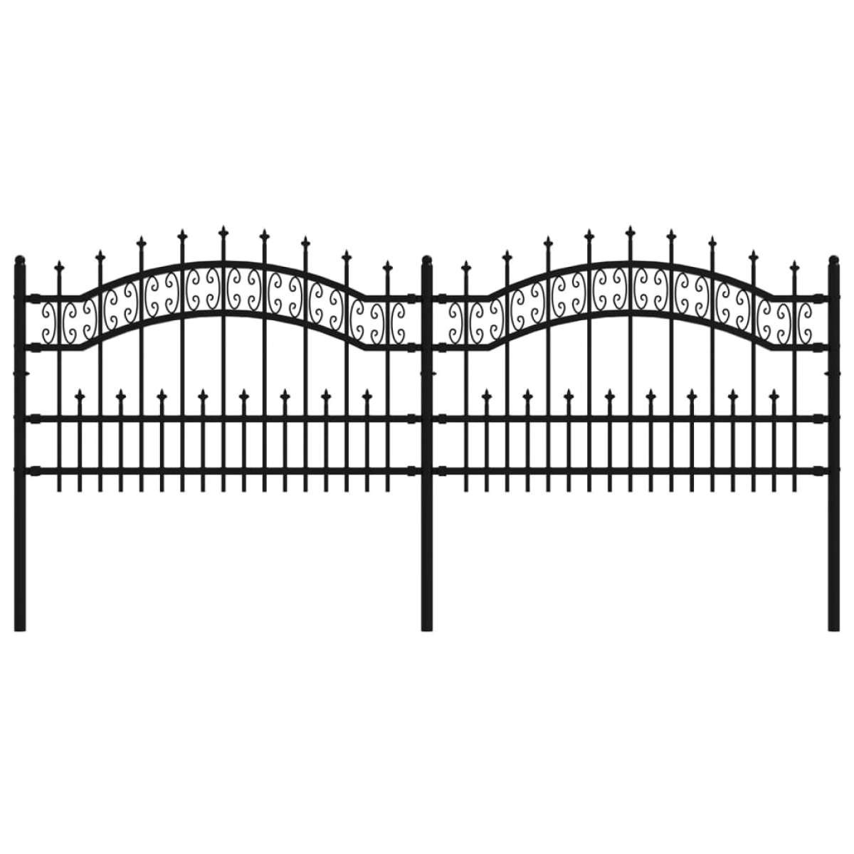 Create a safe board around your property with this garden fence! This powder-coated steel garden fence forms a sturdy perimeter barrier for your garden, home, and business property. Durable material: Manufactured from powder-coated steel, the fence panel is exceedingly stable, sturdy, and durable.High-security design: The metal fence provides a high degree of security with its elegant, arched top design and strong horizontal braces to reinforce the frame while forming a stunning entryway to your property.Decorative function: This spike fence itself is a decorative element for your garden and adds delight to your life. Note:Each product comes with an assembly manual in the box for easy assembly.You can buy more sets to make the fence as long as you like.