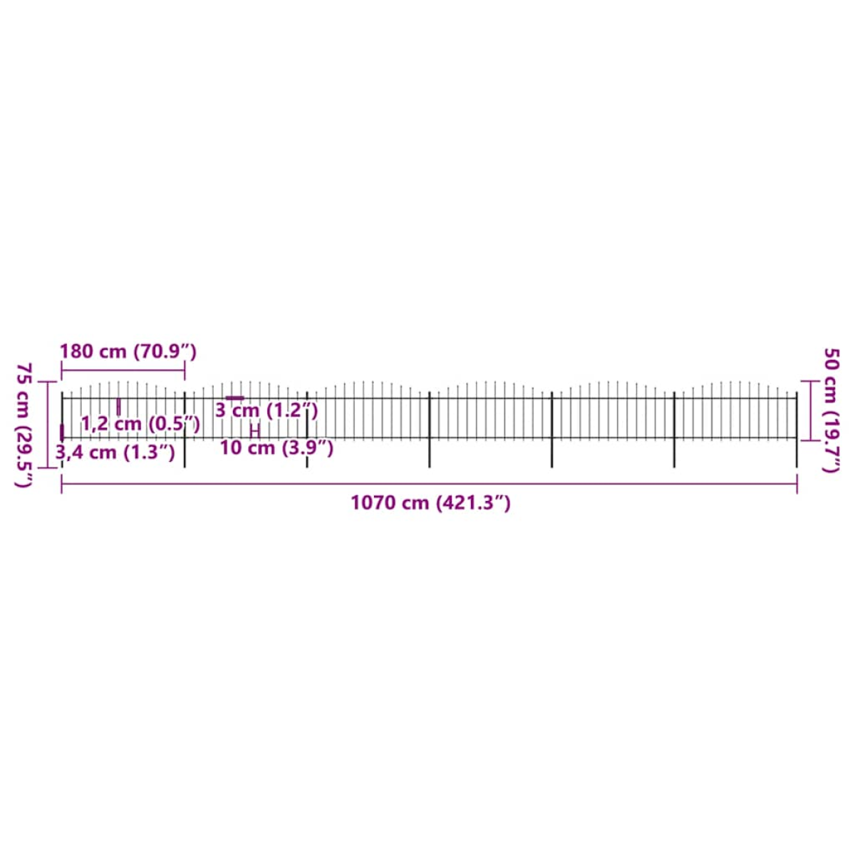 vidaXL Garden Fence with Spear Top Steel 1070x75 cm Black