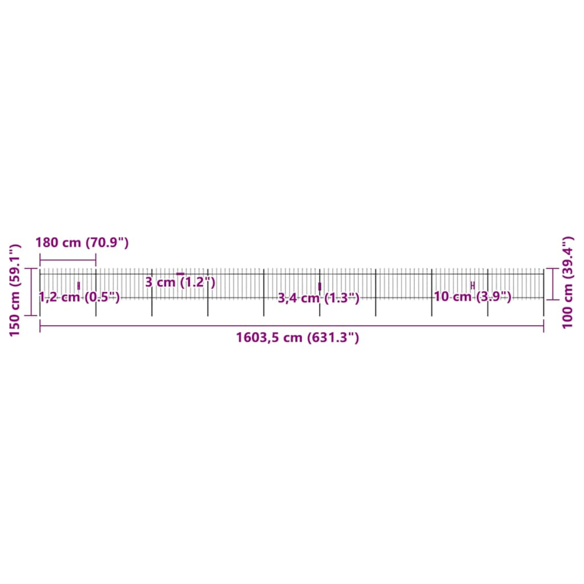 vidaXL Garden Fence with Spear Top Steel 1603.5x100 cm Black