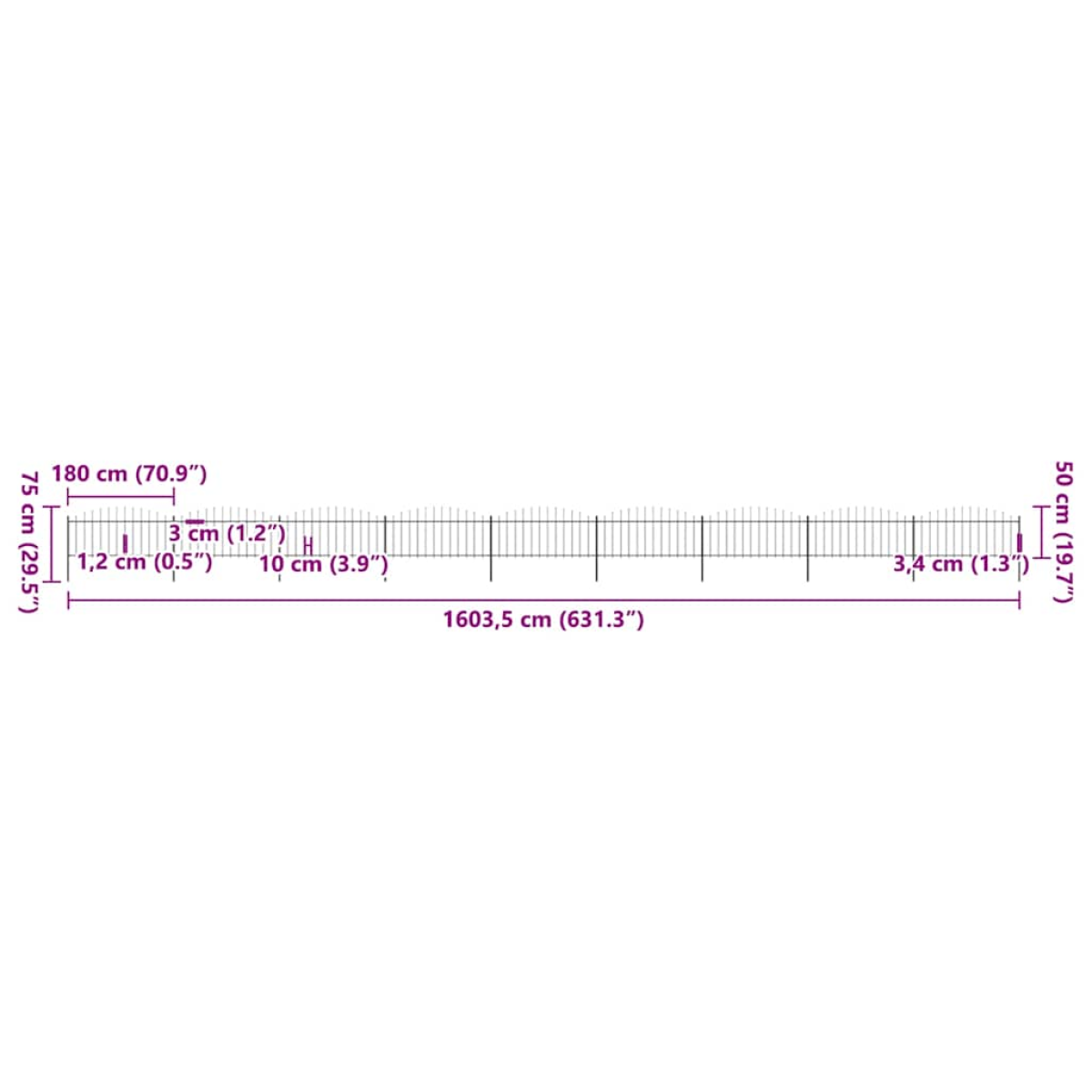 vidaXL Garden Fence with Spear Top Steel 1603.5x75 cm Black