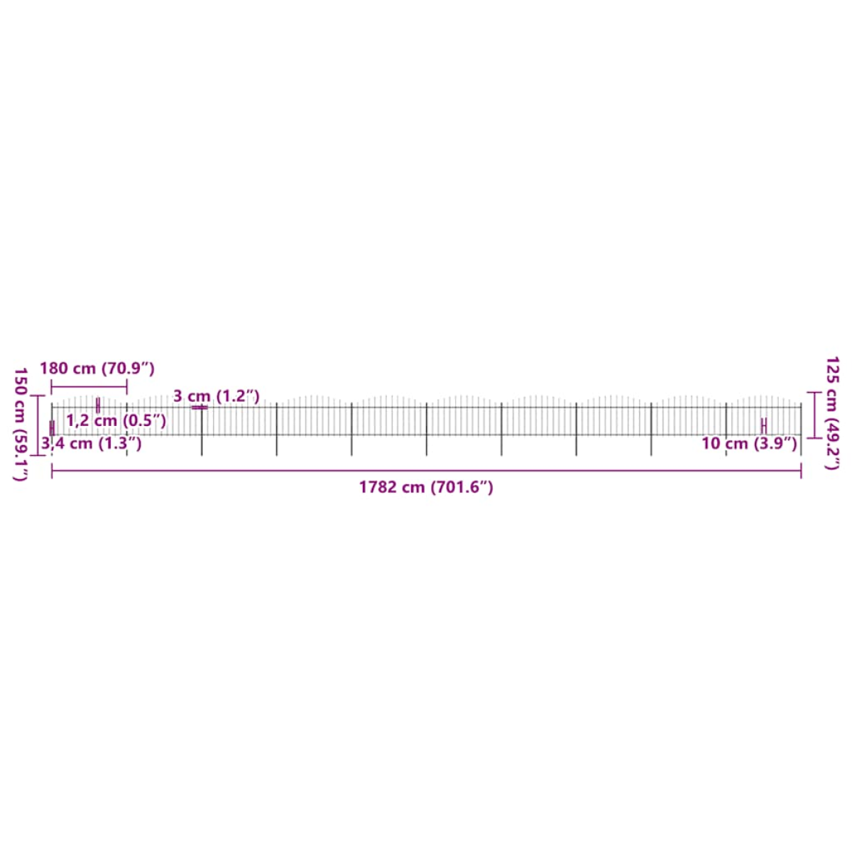 vidaXL Garden Fence with Spear Top Steel 1781.5x150 cm Black