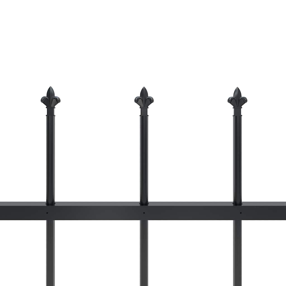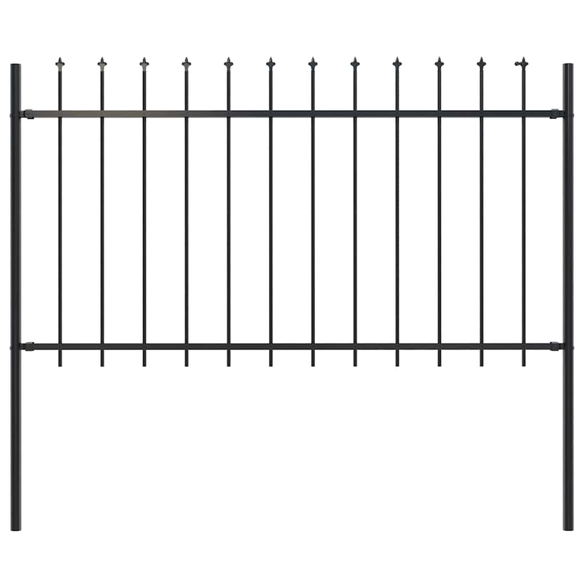 Create an elegant fence around your garden, home, or walkway with our garden fence! Our decorative steel garden fence, consisting of 1 fence panel and 2 posts, has a total length of 1,8 metres. It will form a sturdy, safe and maintenance-free perimeter barrier for your garden, home, or business property. With vertical bars topped with spear ends and strong horizontal brace as reinforcement to the frame, our garden fence will provide a high degree of security. Manufactured from heavy-duty, powder-coated steel, the outdoor fence is exceedingly stable, sturdy and durable. Thanks to the included mounting materials, the garden fence is easy to assemble. Note: You can buy more sets to make the fence as long as you like.