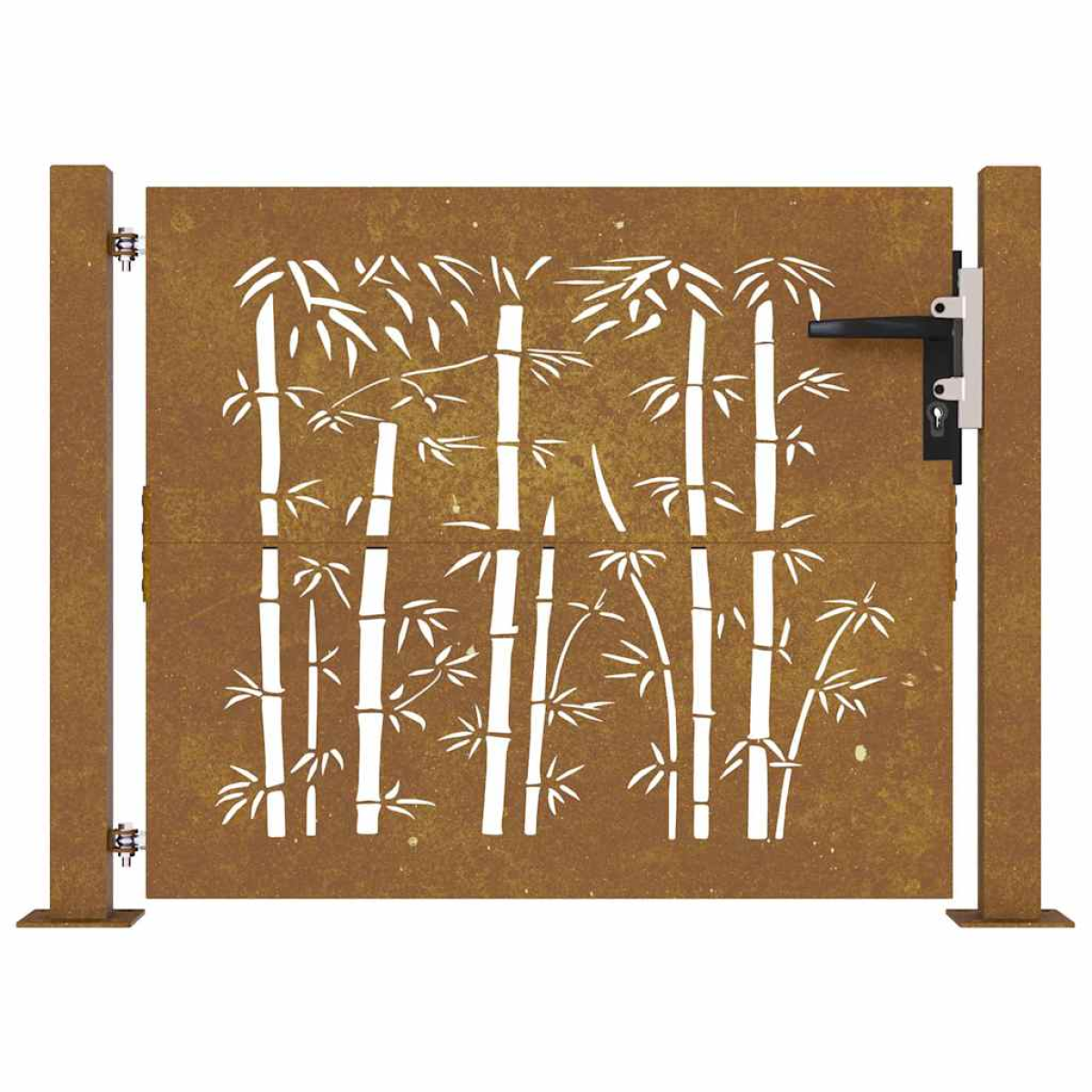 This garden gate, featuring a perfect combination of strength and elegance, makes an ideal entry point for the fence around your garden or patio. Durable material: The metal gate is made of corten steel. Corten steel, also known as weathering steel. This is anti-corrosive by its very nature. It develops a rusty protective layer against corrosion when first exposed to atmospheric conditions. Thus, you don't need to paint it. This can help you save on maintenance and repair costs. The distinctive brown colour on the corten steel will surely be an eye-catcher. Finally, weathering steel is exceptionally durable and will stand up to the test of time. Laser-cut design: The side gate has a beautiful laser-cut design that adds a special charm to your home.Lockable system: The steel gate is equipped with a lockable system for extra security.Stable base: The 4 mounting holes in the base of the gate post allow you to fix it to the ground for added stability. Good to know:This product should be assembled.The gate frame is not included in the delivery.This product is not rusted yet and has a normal metal colour when you receive it, but rust will develop over time. You could speed up the rusting process by spraying it with soap water and salt water. To keep your clothes stain-free, avoid contact with the developing rust layer.