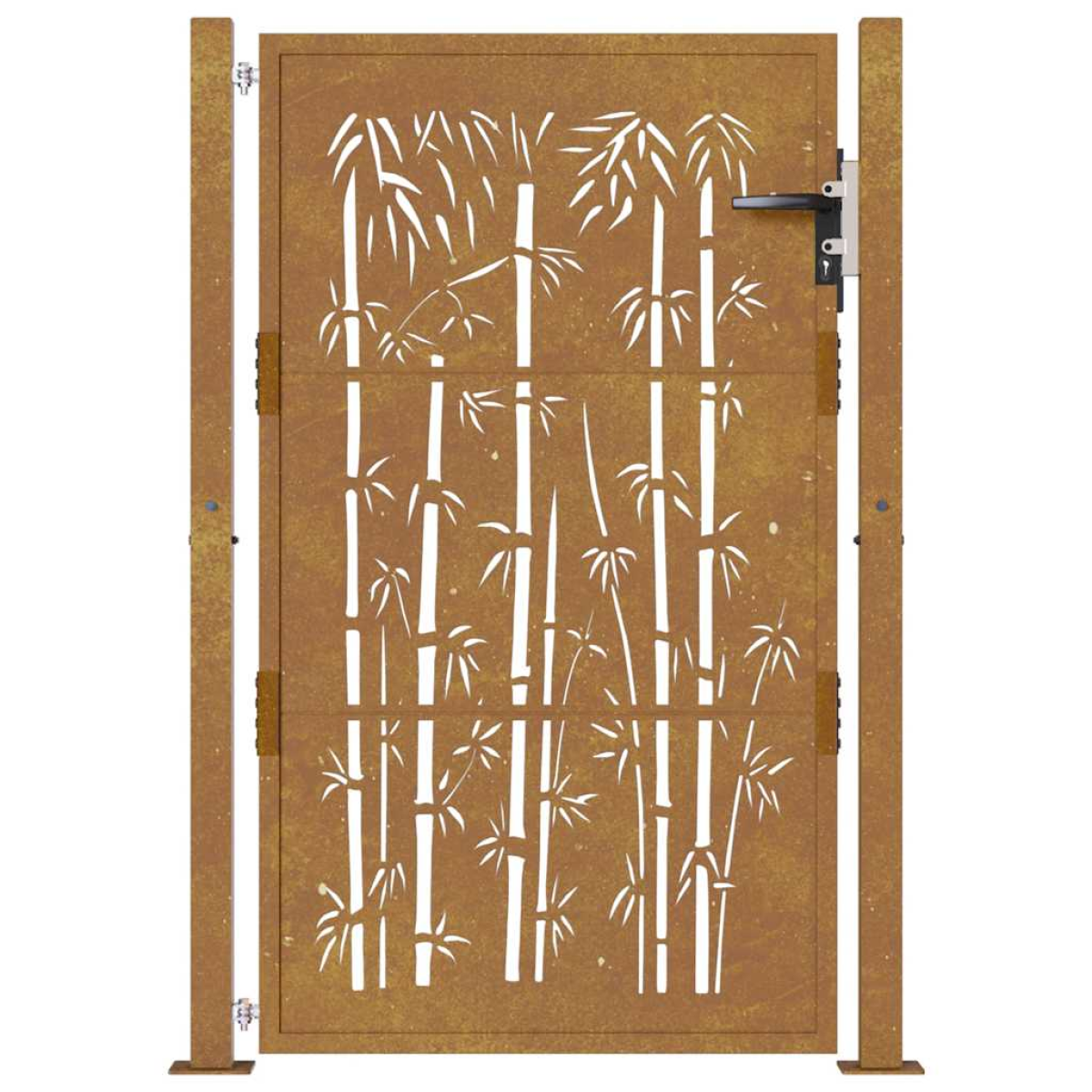 This garden gate, featuring a perfect combination of strength and elegance, makes an ideal entry point for the fence around your garden or patio. Heavy-duty construction: This fence gate is made of corten steel. Corten steel, also known as weathering steel. This is anti-corrosive by its very nature. It develops a rusty protective layer against corrosion when first exposed to atmospheric conditions. Thus, you don't need to paint it. This can help you save on maintenance and repair costs. The distinctive brown colour on the corten steel will surely be an eye-catcher. Finally, weathering steel is exceptionally durable and will stand up to the test of time.Laser-cut design: The security gate has a beautiful laser-cut design that adds a unique charm to your home.Lockable system: The outdoor gate is equipped with a lockable system for extra security.Easy to assemble: The entrance gate comes complete with two posts with flange plates and mounting accessories for easy installation. Good to know:This product is not rusted yet and has a normal metal colour when you receive it, but rust will develop over time. You could speed up the rusting process by spraying it with soap water and salt water. To keep your clothes stain-free, avoid contact with the developing rust layer.