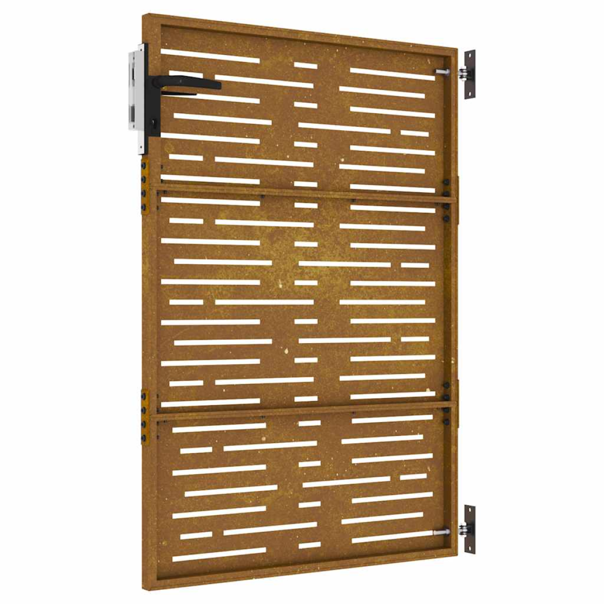 This garden gate, featuring a perfect combination of strength and elegance, makes an ideal entry point for the fence around your garden or patio. Durable material: The metal gate is made of corten steel. Corten steel, also known as weathering steel. This is anti-corrosive by its very nature. It develops a rusty protective layer against corrosion when first exposed to atmospheric conditions. Thus, you don't need to paint it. This can help you save on maintenance and repair costs. The distinctive brown colour on the corten steel will surely be an eye-catcher. Finally, weathering steel is exceptionally durable and will stand up to the test of time. Laser-cut design: The side gate has a beautiful laser-cut design that adds a special charm to your home.Lockable system: The steel gate is equipped with a lockable system for extra security. Good to know:This product should be assembled. The gate frame and posts are not included in the delivery.This product is not rusted yet and has a normal metal colour when you receive it, but rust will develop over time. You could speed up the rusting process by spraying it with soap water and salt water. To keep your clothes stain-free, avoid contact with the developing rust layer.