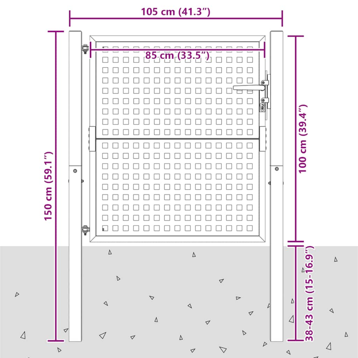 This garden gate is a great combination of strength, stability, and corrosion resistance! It will surely be an ideal entry point for your garden, patio, or terrace! Durable material: Steel is an exceptionally hard and strong material. It offers sturdiness and stability.Practical design: The patio gate is welded with thick wire mesh for extra strength. It offers a high level of security while providing fabulous access to your property.Lockable design: The back garden gate has one set of lock and handle, which ensures the patio gate can be locked well.