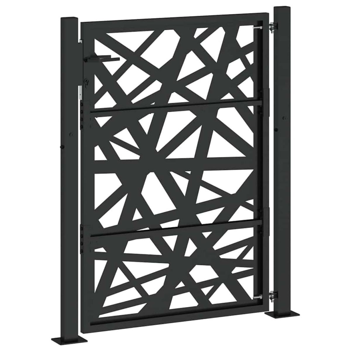 This garden gate, featuring a perfect combination of strength and elegance, makes an ideal entry point for the fence around your garden or patio. Durable material: Steel is an exceptionally hard and strong material. It offers sturdiness and stability. Galvanisation provides better protection against corrosion and is useful for products that'll be used outdoors as well as in harsh environments. And the powder coating on steel creates a protective layer against wear and tear.Laser-cut design: The security gate has a beautiful laser-cut design that adds a unique charm to your home.Lockable design: The outdoor gate is equipped with a robust locking system that comes with three matching keys, guaranteeing that the patio gate can be securely locked.Easy to assemble: The entrance gate comes complete with two posts with flange plates and mounting accessories for easy installation.Wide applications: The metal gate is perfect for enhancing garden entrances, driveways, and any property boundaries, combining functionality and visual appeal.