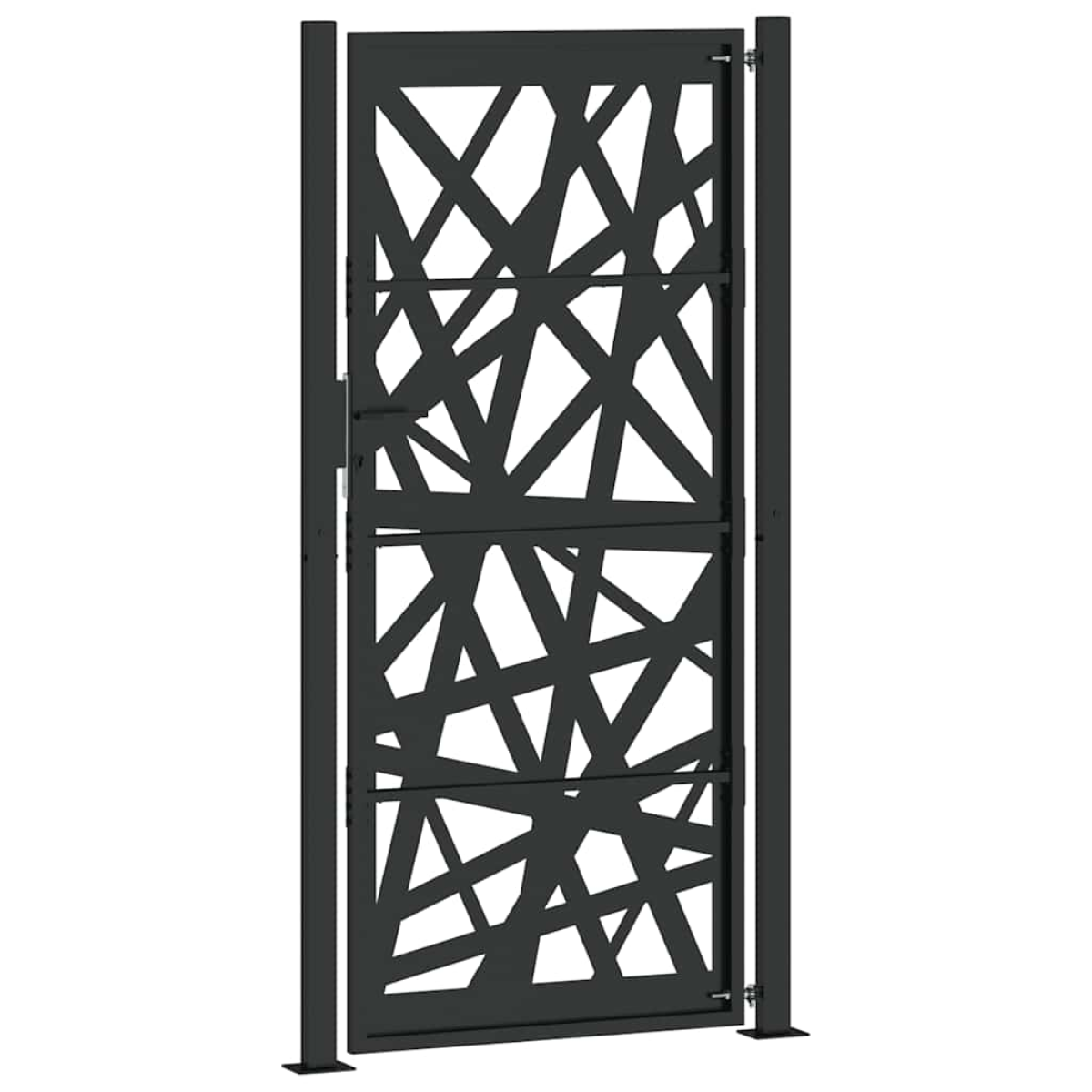This garden gate, featuring a perfect combination of strength and elegance, makes an ideal entry point for the fence around your garden or patio. Durable material: Steel is an exceptionally hard and strong material. It offers sturdiness and stability. Galvanisation provides better protection against corrosion and is useful for products that'll be used outdoors as well as in harsh environments. And the powder coating on steel creates a protective layer against wear and tear.Laser-cut design: The security gate has a beautiful laser-cut design that adds a unique charm to your home.Lockable design: The outdoor gate is equipped with a robust locking system that comes with three matching keys, guaranteeing that the patio gate can be securely locked.Easy to assemble: The entrance gate comes complete with two posts with flange plates and mounting accessories for easy installation.Wide applications: The metal gate is perfect for enhancing garden entrances, driveways, and any property boundaries, combining functionality and visual appeal.