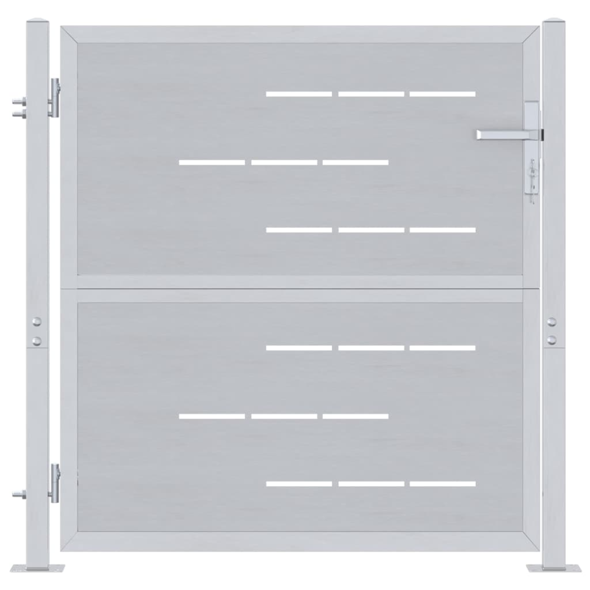 This modern garden gate offers a stylish and durable solution for enhancing security and aesthetics in outdoor spaces. Made from stainless steel, it combines functionality and contemporary style, perfectly suited for gardens and terraces. Its rectangular shape and silver color exude a refined simplicity, making it versatile for various settings. Materials: Crafted from high-quality stainless steel, this garden gate provides a robust structure that resists wear and tear, even in the toughest weather. The material's corrosion-resistant properties ensure longevity and low maintenance, allowing this gate to maintain its sophisticated appearance. Included Components: Featuring a strong deadbolt lock, this gate offers enhanced security for gardens and terraces. The lock requires a key for operation, providing peace of mind. Easy handling and installation with provided parts offer convenience for users. Features /Function /Design: The modern design of this garden gate blends simplicity and elegance, highlighted by its sleek lines and minimal ornamentation. Its rectangular shape ensures compatibility with various garden styles, offering an aesthetically pleasing entry solution. Recommended Uses: Ideal for outdoor settings such as gardens and terraces, this gate serves as a practical yet stylish barrier. Its versatile design enhances both contemporary and traditional landscapes, making it suitable for residential and commercial spaces. Care &Maintenance: Designed for easy maintenance, simply wipe down the gate with a damp cloth to retain its clean appearance. Regular upkeep ensures the stainless steel material remains rust-free, prolonging the gate's life and performance.