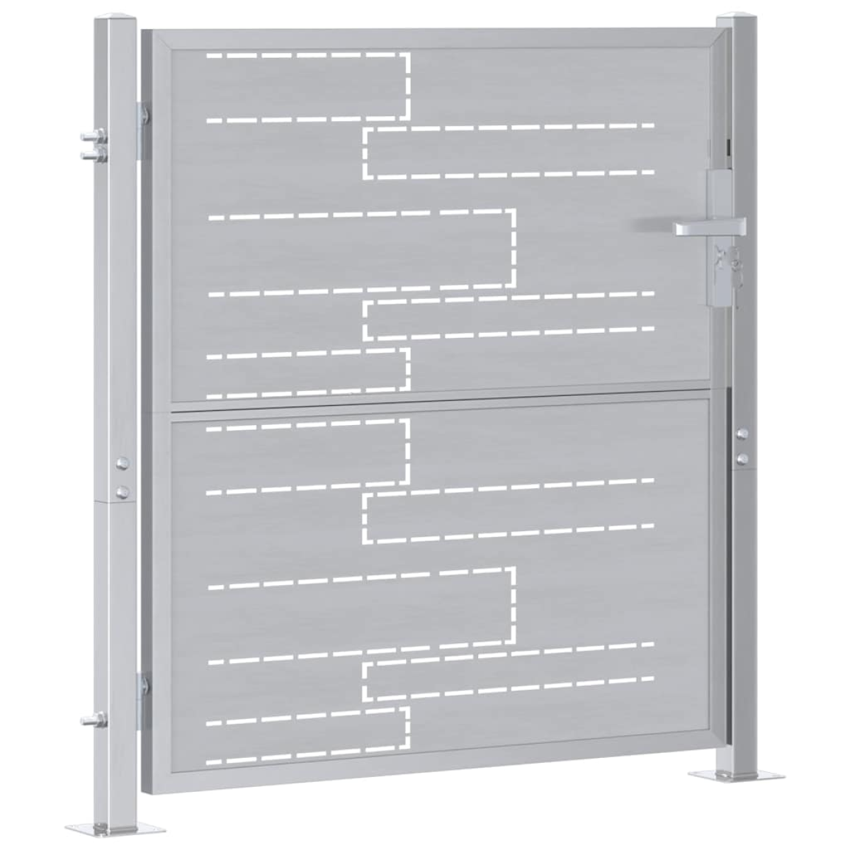This durable garden gate captures the sleek design philosophy often associated with modern outdoor setups. Crafted specifically for outdoor spaces like gardens and terraces, its simple yet functional aesthetic provides a seamless transition to any landscape. Its stainless steel construction renders a polished appearance, which pairs with clean lines for a minimalist vibe that transforms a boundary into a statement piece, while inviting a sense of elegance and security for your outdoor environment. Sturdy Construction: The gate's stainless steel frame ensures robustness and longevity. Known for their resistance, stainless steel gates remain low-maintenance and retain their shine even after prolonged exposure to the elements. The material's natural resilience guarantees a weather-resistant structure that stands firm against harsh conditions and adds a sleek silver finish to your outdoor aesthetics. Advanced Locking Mechanism: Featuring a high-grade deadbolt lock, this gate provides maximum security. Ideal for areas where secure closures are essential, this locking system requires a key for operation, deterring unwanted access while offering reliability and peace of mind. Weather and Rust Resistant: This gate is specifically designed to endure outdoor weather conditions. Thanks to its rust-resistant properties, it maintains its silver appearance and avoids ,ensuring a consistently high aesthetic and performance across various climates. Modern Aesthetic: Striking in its minimalism, the gate complements modern exterior aesthetics with its clean lines and polished surfaces. Its simplicity allows it to blend with various landscaping styles, merging functionality and style seamlessly for ultimate outdoor appeal. Easy Maintenance: Maintenance is straightforward with this gate. Simply wipe with a damp cloth to keep it clean and lustrous. This ease of care ensures that your gate remains pristine without extensive upkeep.