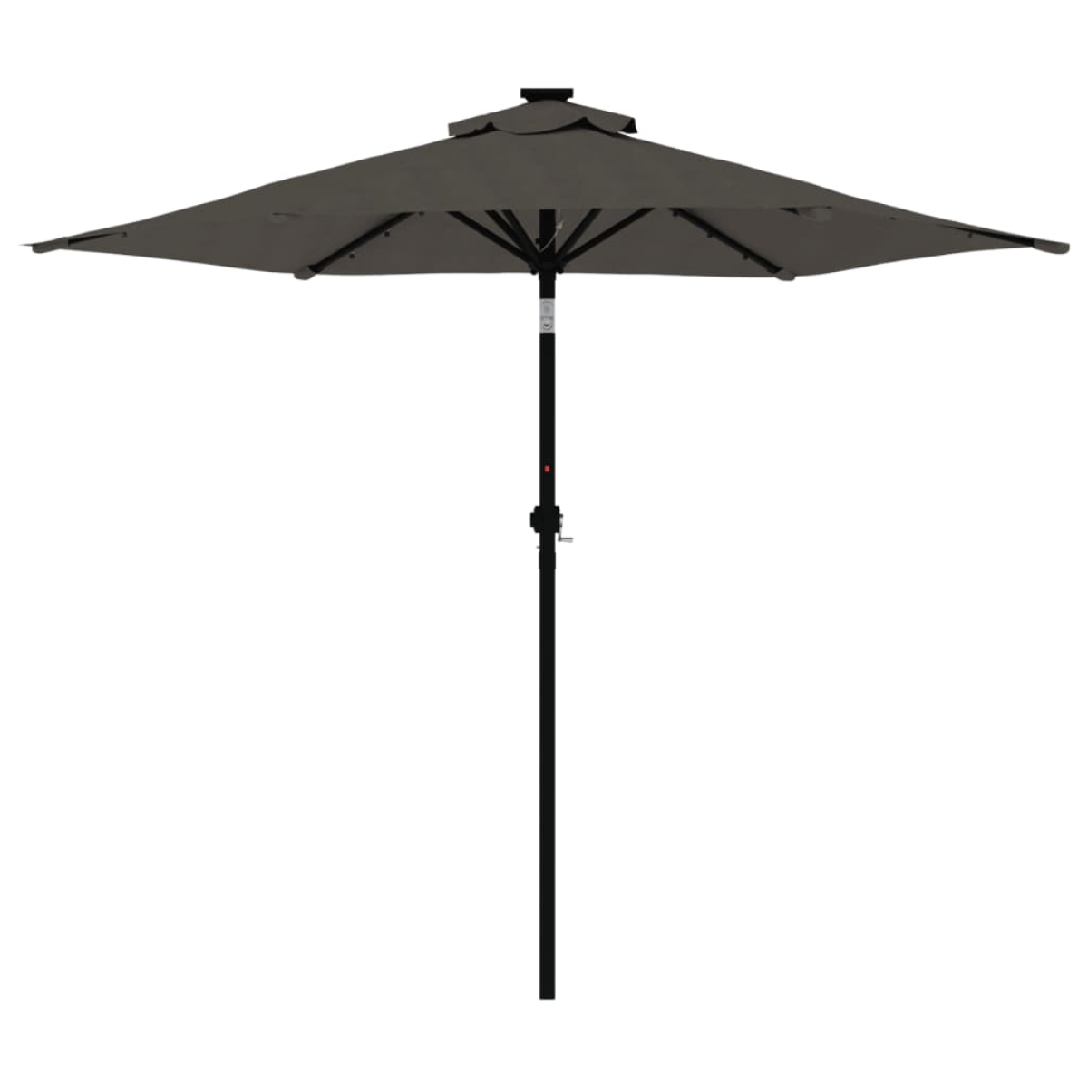 This garden parasol is perfect for creating some shade and protecting you from the sun's harmful UV rays. Sun and rain protection: Made from durable polyester, this outdoor umbrella offers protection from the sun and rain, creating an ideal spot for you to enjoy the outdoors. Sturdy construction: This garden umbrella is supported by a robust pole and ribs at the top, ensuring the cover remains upright even on windy days. Crank and tilt mechanism: This outdoor parasol has a crank system that allows you to easily open and close it. The button-tilting design allows you to tilt the parasol to block the sun and keep cool and comfortable.Bright LED lights: The integrated LED lights of the umbrella illuminate your outdoor living space and create a cosy and romantic ambience when the sun goes down. Good to know:This product is not a toy! Ensure that children do not use either the sunshade, the canopy or the base for playing or climbing. Do not use open fire (e.g. garden barbecue or grill) beneath or right next to this product. This product is not 100% waterproof. We recommend treating this product with a waterproof spray for better water resistance.
