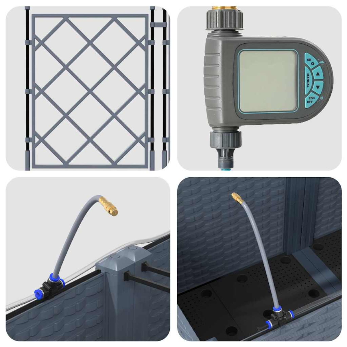 This planter box is a great all-rounder for outdoor gardening. It has a cool, modern style with a simple and clean look, making it a lovely addition to any garden or terrace. Whether you're sprucing up your patio with bright flowers or growing herbs for cooking, this planter will boost the charm of your outdoor space. Thanks to its sturdy build and practical design, it promises a long-lasting gardening experience. Sleek Modern Style This planter box has a simple and functional design. Its clean lines and minimal embellishments fit perfectly with any garden or terrace style, adding a touch of elegance to your outdoor space. UV Resistant Construction Made from UV-resistant steel, it promises to stand up to the sun. This strong material keeps the planter looking great and helps it last season after season, ensuring a trustworthy home for your plants. Built-in Irrigation System Enjoy an integrated watering system that makes taking care of your plants a breeze and helps them grow well. This handy feature cuts down on the need for constant watering, so you can relax while your garden thrives. Ample Plant Storage With loads of room, this planter can hold a variety of plants, from showy flowers to tasty herbs. Its spacious design lets you get creative with your garden layout, ensuring every plant has enough space to flourish. Convenient Care Process To keep your planter looking sharp, just wipe it down with a clean cloth to clear off dust. Keep it out of direct sunlight to help it last longer, and make sure everything is securely connected if you need to take it apart or move it—these simple tips will help keep it in great shape over time.