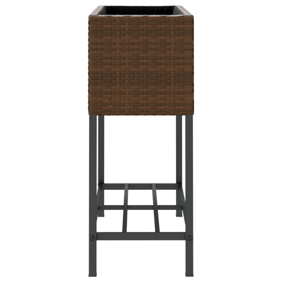 This garden planter is an ideal choice for growing a variety of flowers or plants. Durable material: PE rattan, also known as poly rattan, is a strong, low-maintenance synthetic material that looks like natural rattan. It's lightweight, easy to clean, and commonly used for outdoor furniture due to its durability and weather-resistant properties.Robust and stable frame: The powder-coated steel frame is strong, stable, durable, and resistant to corrosion and harsh weather, ensuring long-lasting performance.Two ways of using: You can use the non-woven bag as a liner and fill the planter with soil or you can just put flowerpots inside.Practical shelf: The garden planter is designed with a shelf, allowing you to store potting soil and plant accessories within easy reach. In addition, the shelf prevents water, grass and dirt from the ground from touching the raised veg planter to keep it clean and beautiful.Decorative function: The flower box can hold your favourite plants or flowers, which is ideal for your garden as decoration.
