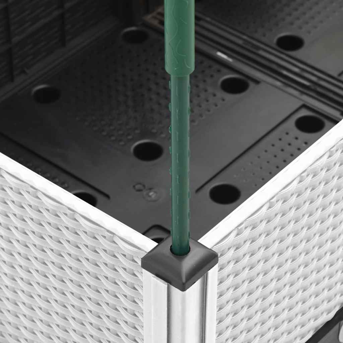 This garden planter with trellis is an excellent choice for climbing plants in your garden, patio and terrace. Durable material: Polypropylene is a popular plastic that is also one of the most used materials in outdoor furniture. It's lightweight, tough, and resistant to impact.Generous capacity: The outdoor planter provides plenty of space for growing all your vegetables, flowers and other plants.Practical design: The ideal bottom layer helps retain moisture and allows for easy drainage. Additionally, the integrated trellis offers great support for growing climbing plants such as tomatoes, peas, and roses.Beautiful rattan look: The patio planter is designed with a rattan look, bringing an elegant charm to your living space.Elevated design: The elevated design of this planter box can protect your plants from weeds and pests.