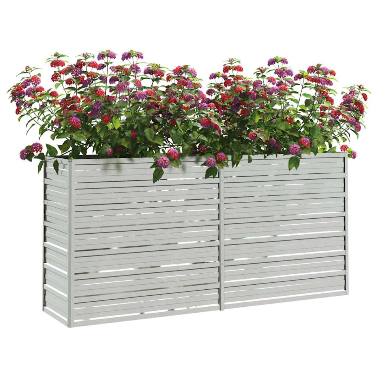 This metal garden raised bed is a great choice for DIY enthusiasts to decorate their gardens, balconies or patios. Ample space: The planter is deep and wide enough to hold a large amount of soil and provide ample space for your plants, vegetables, herbs and flowers.Robust and stable: Made of heavy-duty galvanised steel, the planter pot is weather resistant and therefore very practical for outdoor use.Open bottom: The bottomless design provides good drainage for plants and prevents water buildup that causes the roots of plants to rot. It also allows plants to better absorb nutrients. You can place it on soil, grass, or concrete floors.Wide applications: You can use this raised bed to plant a variety of plants, such as flowers, vegetables, small trees, and even herbs, in your patio, yard, garden, and balcony.