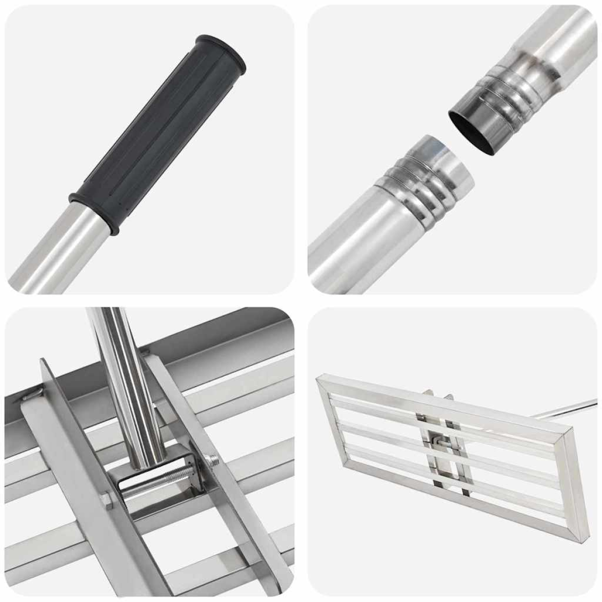 This modern rake combines simplicity and functionality, making it an essential tool for both indoor and outdoor gardening tasks. Its sleek rectangular shape and smooth texture contribute to a contemporary aesthetic that fits seamlessly into various environments, whether maintaining a well-kept garden or smoothing soil on a terrace. Its lightweight construction means it's easy to maneuver, ensuring less strain during prolonged use, while heavy-duty construction makes it suitable for demanding tasks. Water Resistant Material: Designed to withstand the elements, this garden rake offers enduring performance in different outdoor conditions. Its water-resistant surface ensures longevity by preventing damage from moisture, making it reliable for rainy days or damp environments. This toughness against weather conditions makes it a practical tool for avid gardeners who need dependable equipment no matter the climate. Easy Mobility: Thanks to its lightweight design, the rake is easy to carry and reposition, allowing users to effortlessly navigate large garden spaces. This portability reduces fatigue and allows for agile movements, enabling effective coverage of the entire area with minimal effort. Whether gathering leaves or distributing mulch, its manageable weight enhances the overall gardening experience. Heavy-Duty Performance: Built for rugged use, this rake is designed to handle heavier tasks such as moving stones or compacting soil. Its robust frame can withstand significant pressure without bending or breaking, ensuring the tool remains functional and sturdy over time. It provides confidence in tackling demanding garden jobs with ease. Modern Aesthetic: Clean lines and minimal ornamentation characterize its sleek, contemporary style. The brushed finish adds a refined touch with its parallel fine lines, offering both visual appeal and a comfortable grip. This modern design ensures the rake not only serves a practical purpose but also adds an element of style to your tool collection. Multiple Use Scenarios: From smoothing soil in garden beds to keeping terraces tidy, this rake is versatile enough to meet various gardening needs. Its adaptability makes it a valuable tool for any gardener, enhancing efficiency and enabling diverse gardening applications—from residential gardens to larger landscaping projects.