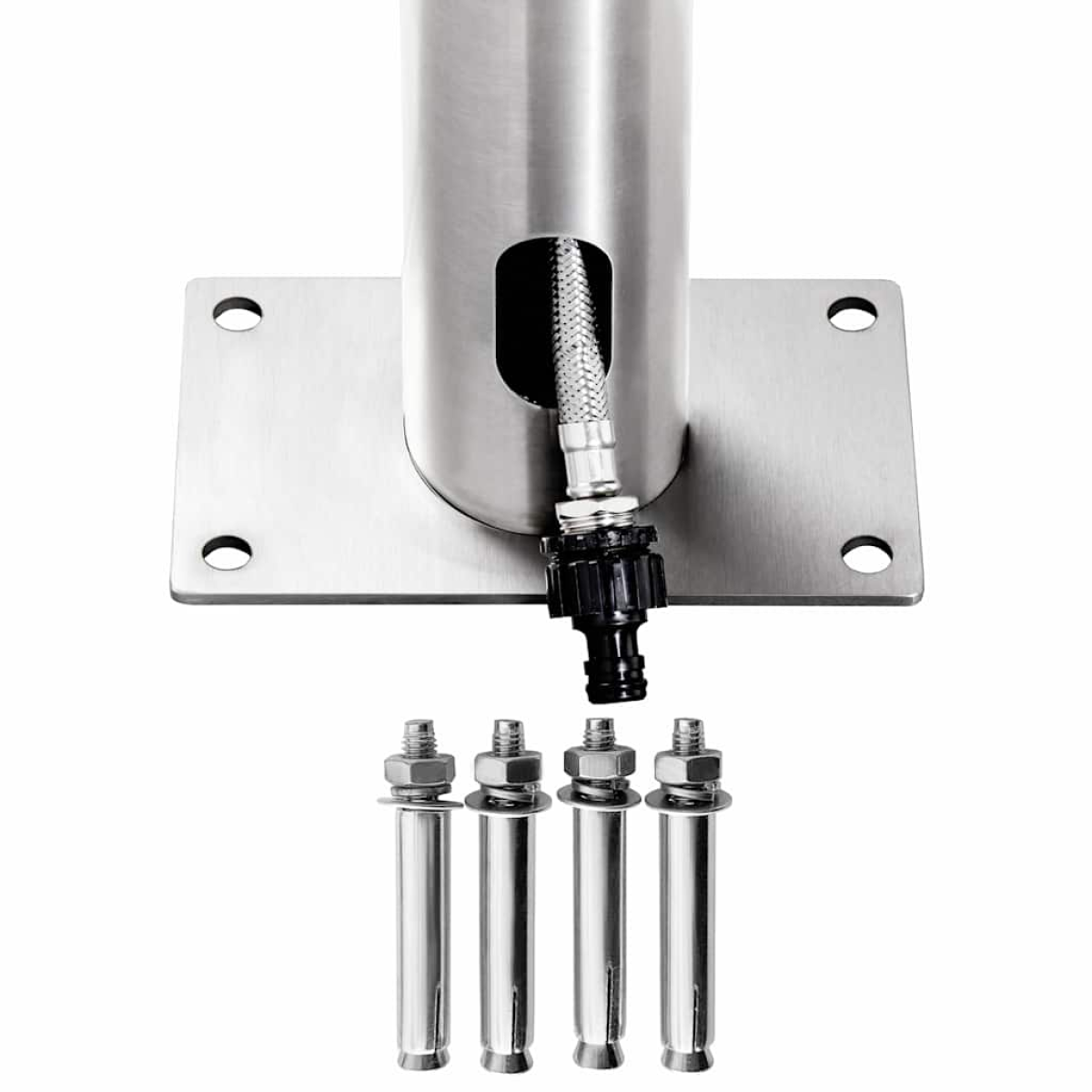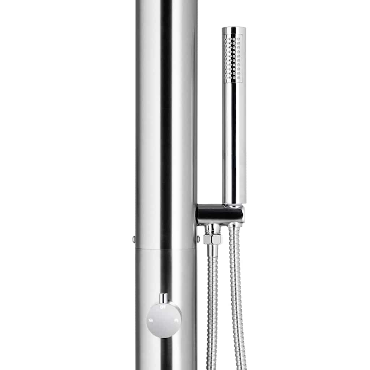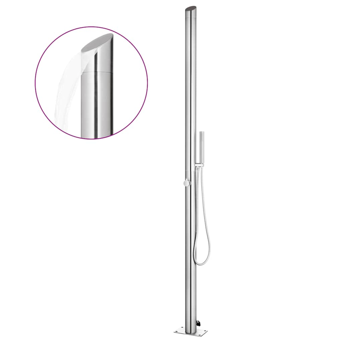This garden shower featuring a modern design is meant to be a great addition to your swimming pool and other outdoor living areas. This outdoor shower is made of stainless steel, making it weather-resistance. The shower system has a waterfall head shower and a hand shower to meet your gardening, watering and quick showering needs. The hand shower features a double-locked flexible hose with a length of 1.5 m. It is also equipped with a brass hand shower holder. The durable and corrosion-resistant shower base is made of premium WPC and framed with stainless steel with a brushed finish, which ensures durability for years of use. It also offers the highest level of hygiene protection, making it ideal for your outdoor space. Thanks to its sturdiness and versatility, the shower tray can serve as a pool ladder base as well. Soak yourself in a truly relaxing shower experience and enjoy the modern style of this outdoor shower system!