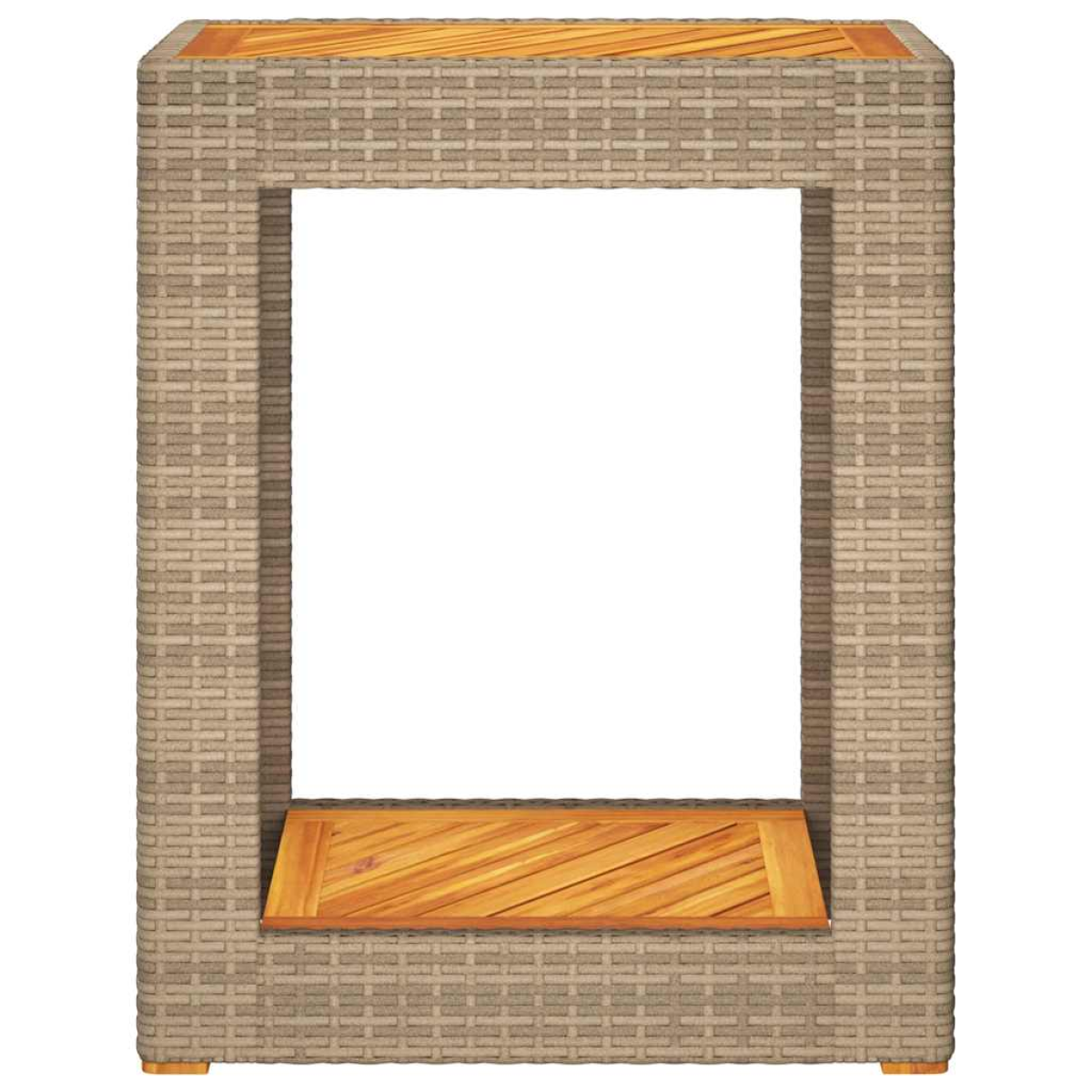 vidaXL Garden Side Table with Wooden Top Beige 60x40x75 cm Poly Rattan