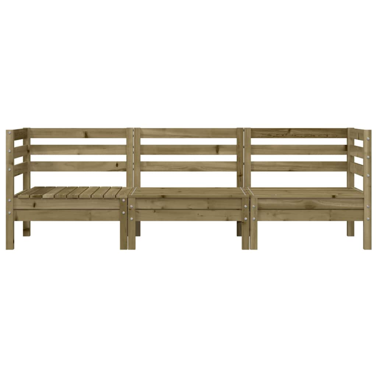 This 3-seater wooden garden sofa will make a great addition to your garden, terrace, or patio for chatting with family and friends or just enjoying the weather. Impregnated wood: Solid pine wood is a beautiful natural material. Pine wood has a straight grain, and the knots give the material its signature, rustic look. Impregnation is a preservation process that is carried out by using autoclaves. The pressure-treatment increases resistance to decay and weather.Comfortable seat experience: The backrest adds extra seating comfort for the garden seating.Slatted design: The slatted design of the pallet sofa effectively prevents water from pooling, ensuring that the seat remains dry and free from potential rot.Modular design: The wooden garden sofa features a modular design, making it completely flexible and easy to move around to suit any setting. You can combine it with other modular segments available in the drop-down menu to create your own personal garden lounge set configurations! Good to know:To make sure your outdoor furniture stays beautiful, we recommend protecting it with a waterproof cover.